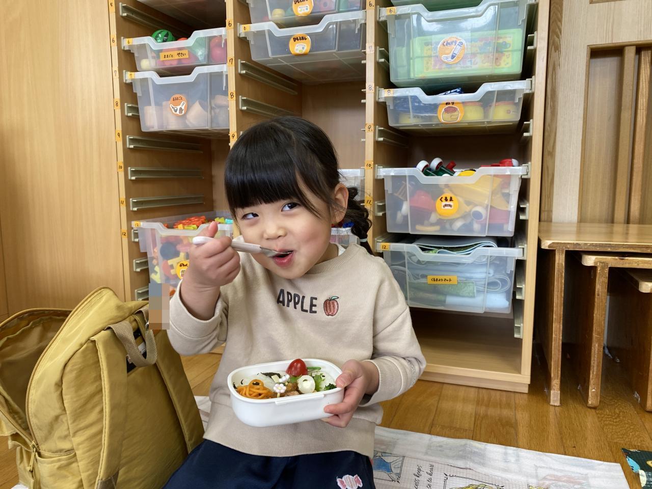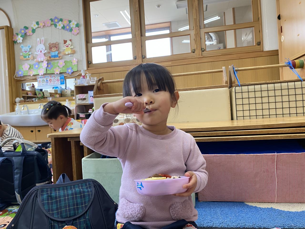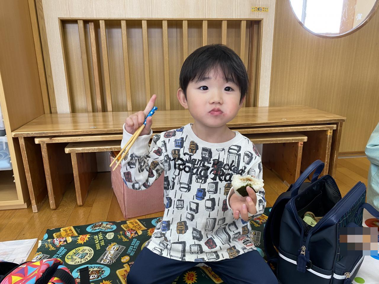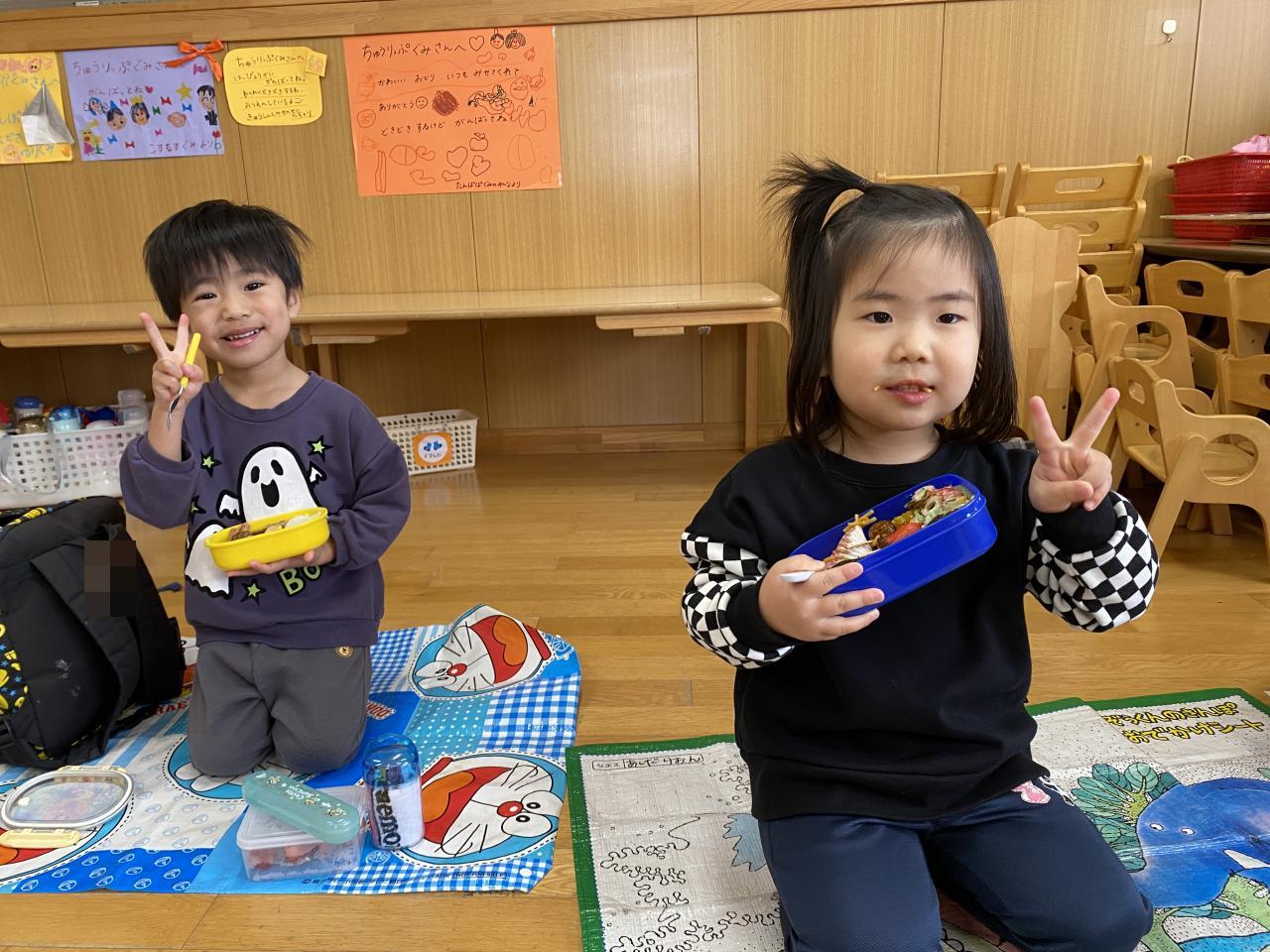 雨は降ってしまいお外で食べられなかったものの「お弁当」が特別で嬉しいちゅうりっぷ組。