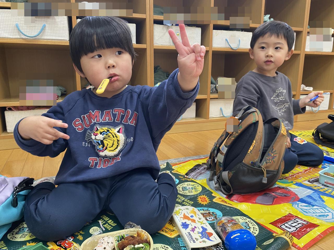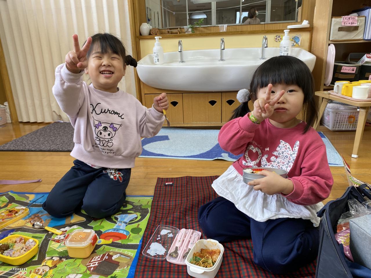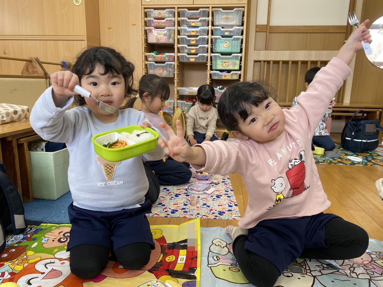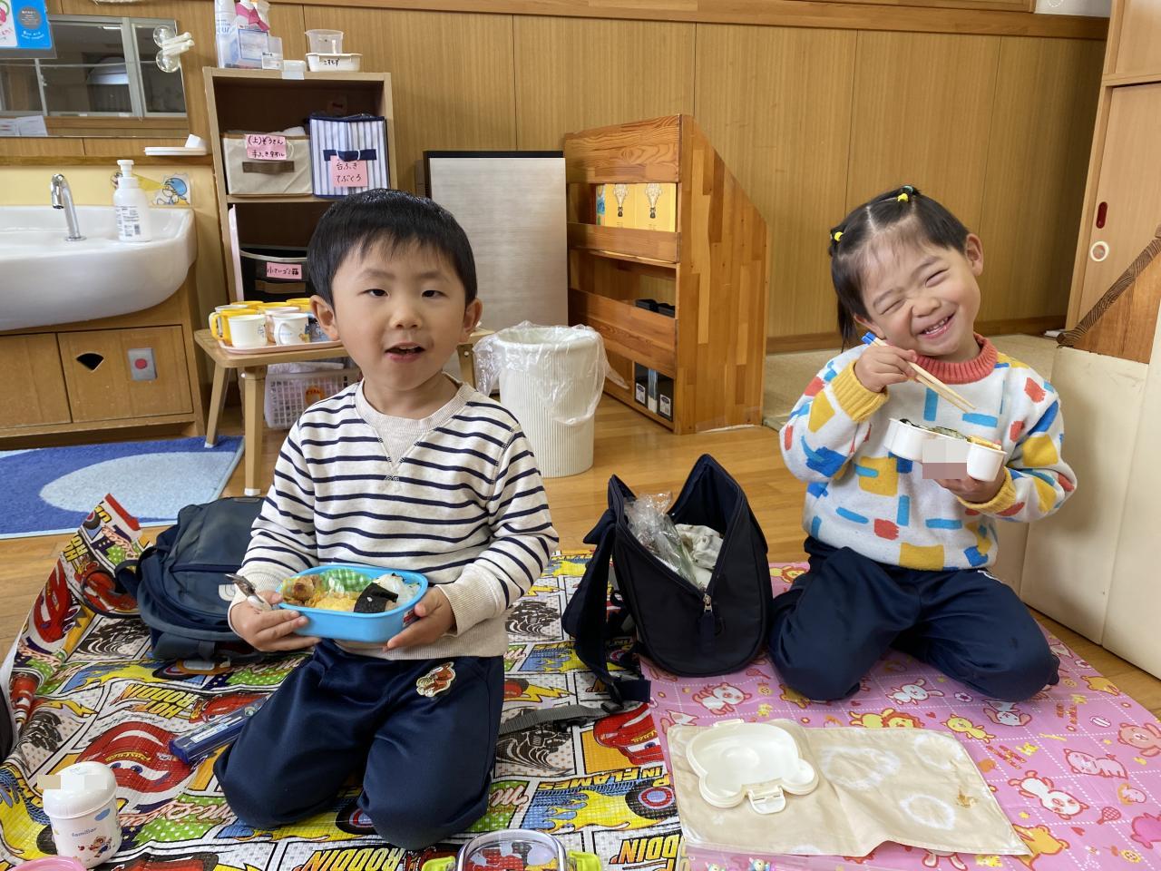 雨は降ってしまいお外で食べられなかったものの「お弁当」が特別で嬉しいちゅうりっぷ組。