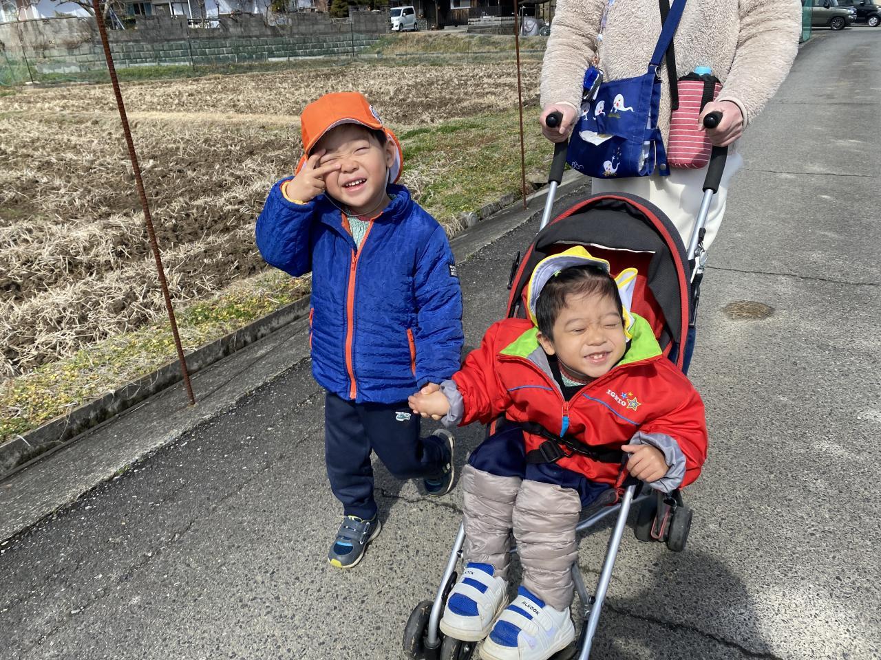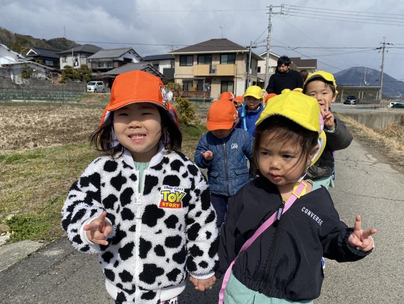途中から晴れ間も見えたので、園周辺をお散歩へ行きました!
