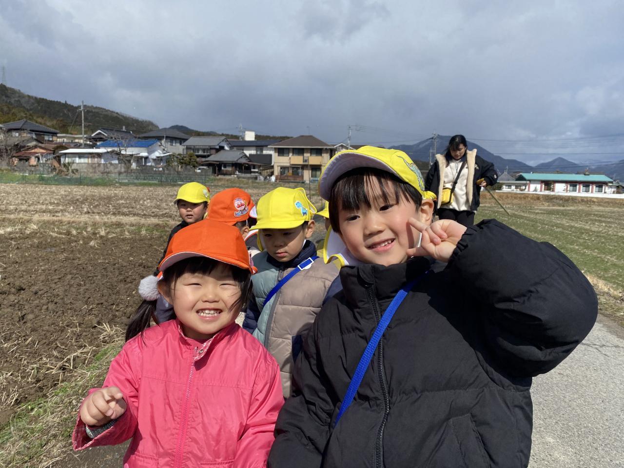途中から晴れてきたので、ちゅうりっぷ組さんと一緒に園の周辺をお散歩しました✨道端に花を見つける子もいて、春の訪れを感じながらのお散歩となりました🌷