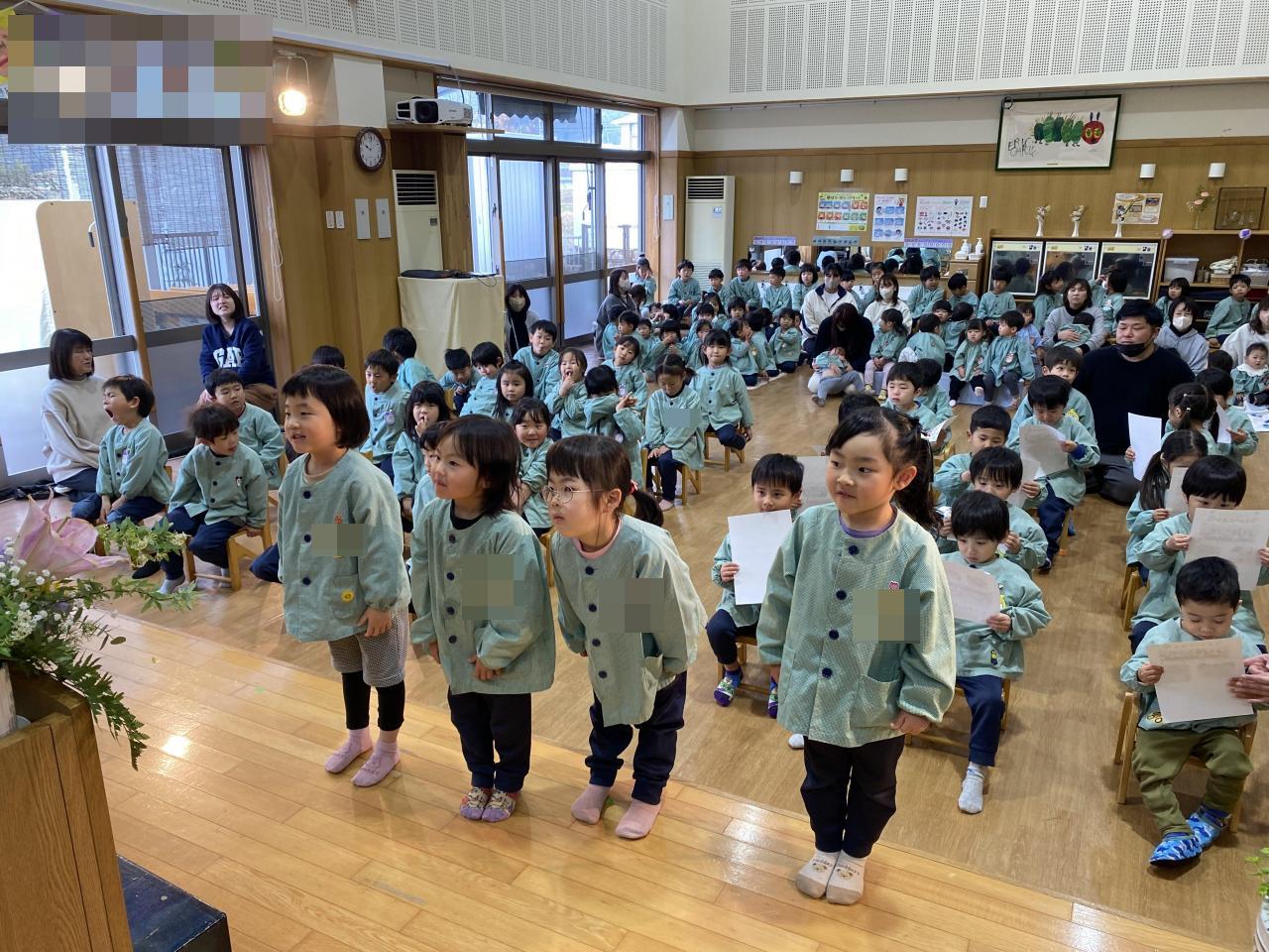 苦手だった野菜を少しずつ食べられるようになったり、小さいお友達に優しくしてくれたり、マラソンでもあきらめずに走る事ができるようになったり…心も体もこの一年でぐんと大きく成長しましたね。みんなの成長を近くで見守ることができ、幸せな一年でした💕