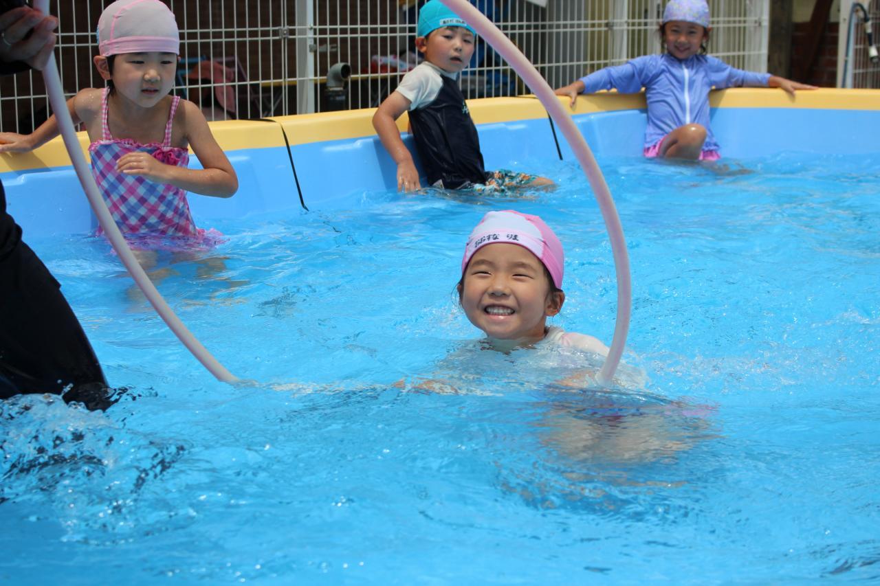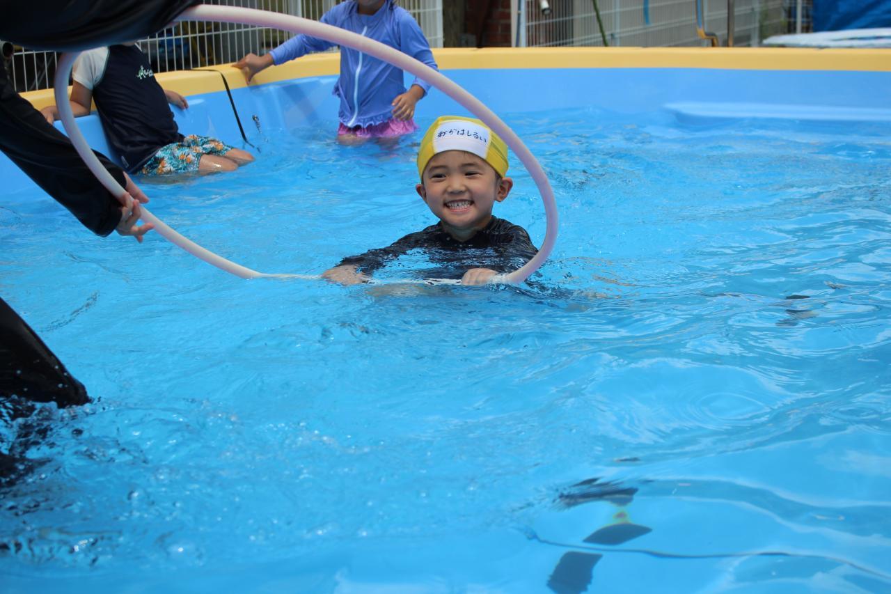 今日は、フープにつかまって泳いでみたり、じゃんけん列車などをして