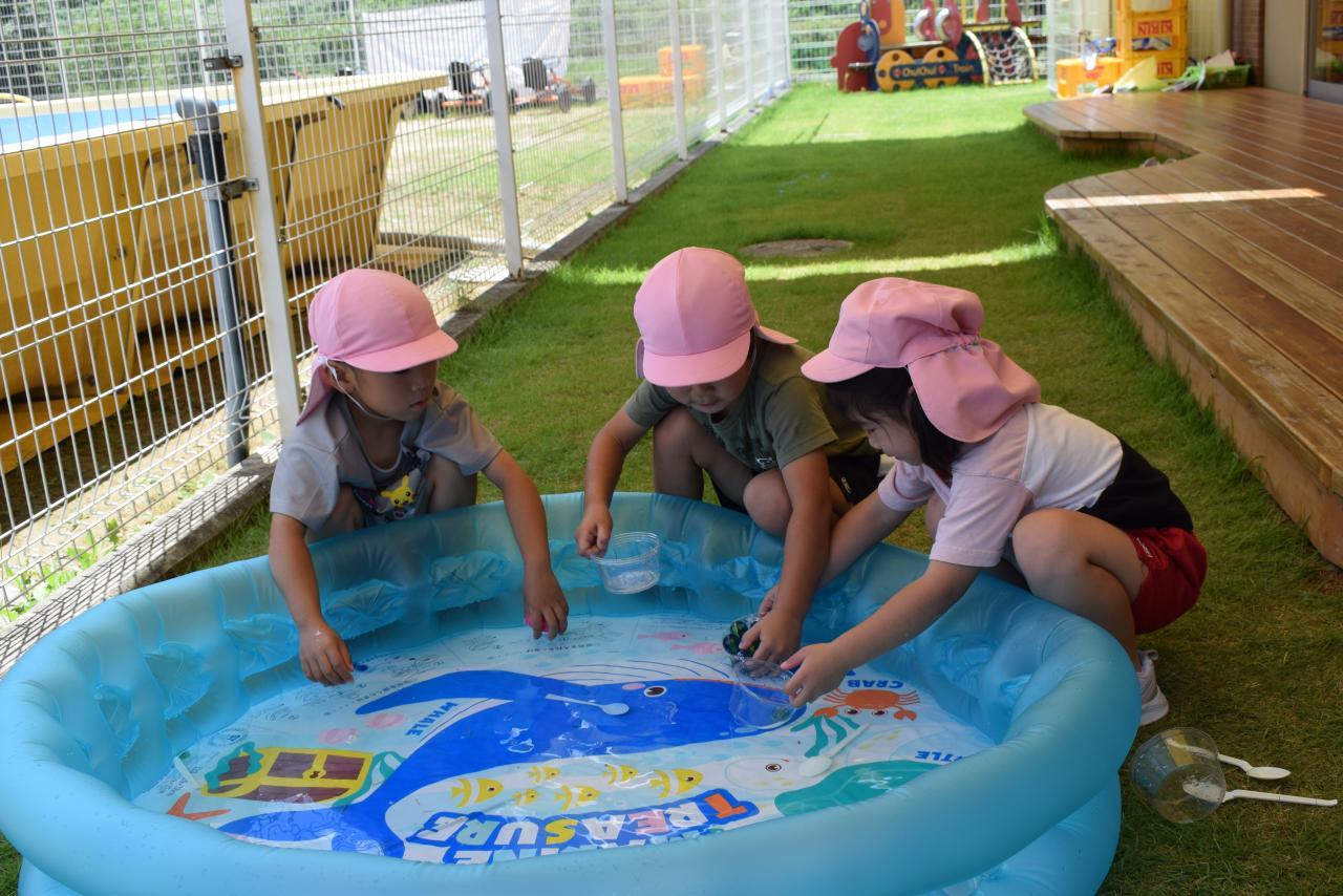 見学のお友だちは、ミニプールでビー玉すくいなどをして遊びました。