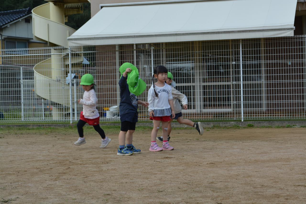 ルールはしっぽ取りと同じだったのですぐに楽しめましたが、しっぽ取り以上に、帽子を取られた時の悔しさがあるようで、たくさんのお友だちが、涙をぐっとこらえたり、ぽろぽろ流したりして