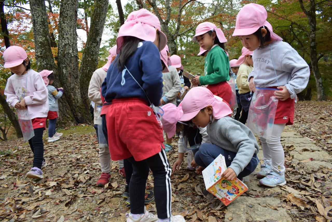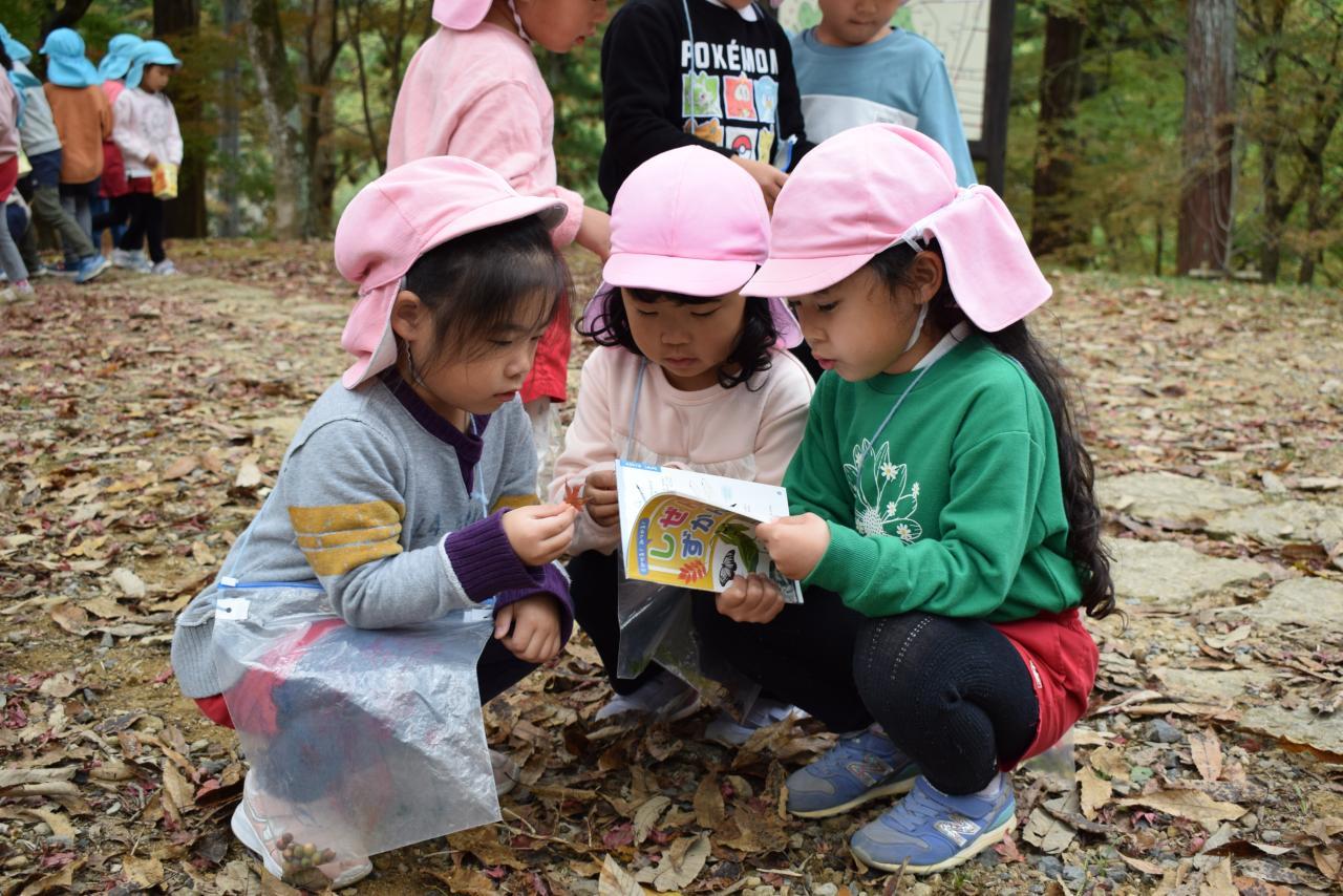 図鑑をもっていっていたので、どんな種類の落ち葉や、どんぐりがあるのかを