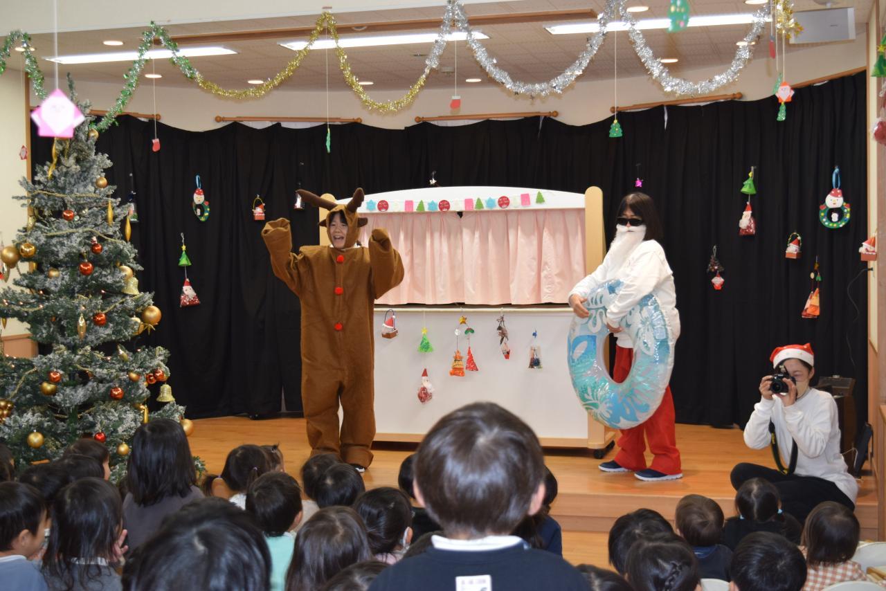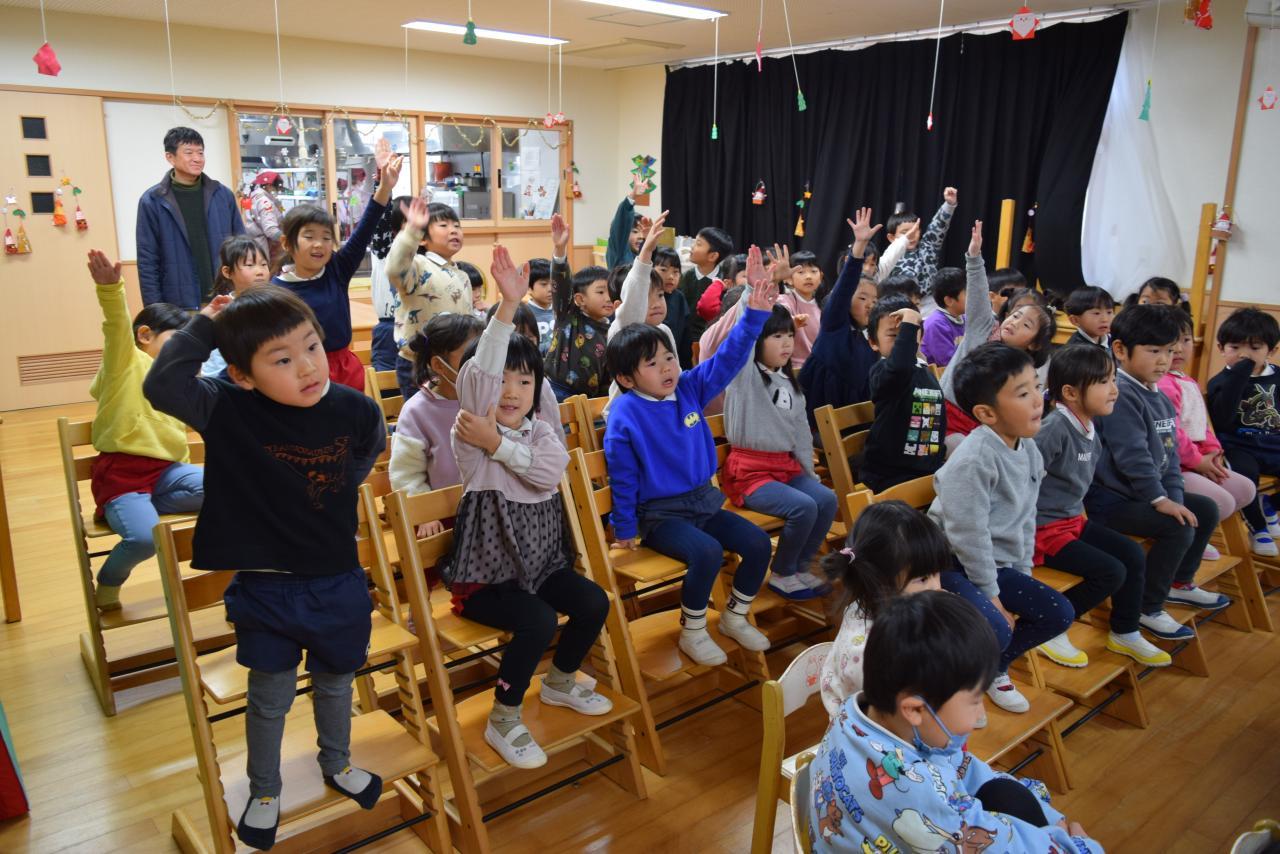 みんなで歌をうたったり、先生たちからの手品や劇の出し物には驚きと大笑いで子どもたちも大喜びでした😝😆