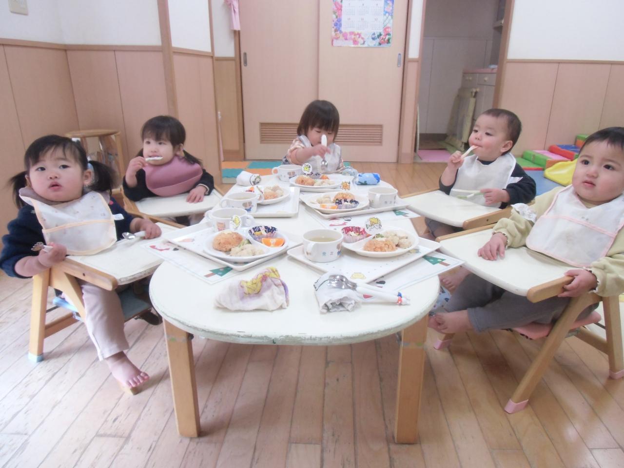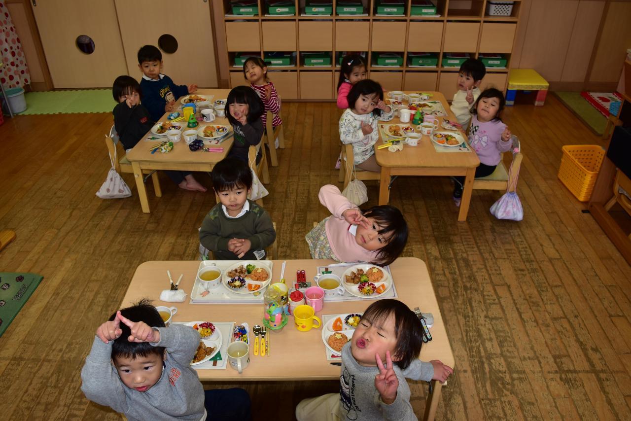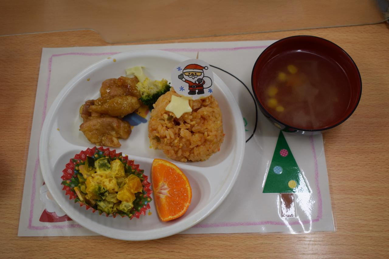 いるか、しゃち、くじら組のお友だちはランチルームで会食を楽しみました🎄