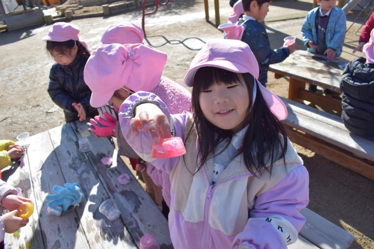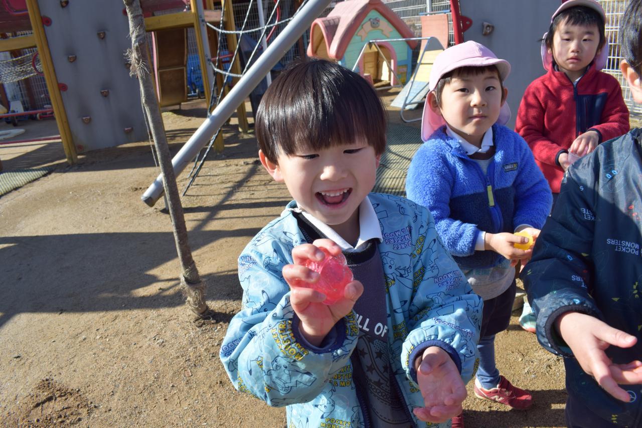 朝から、ずっとソワソワ、「めっちゃ寒いから絶対氷できとるわ!」「太陽が出とるからできてないかもしれん」などなど、子ども同士でたくさんお話していましたよ(^▽^)✨