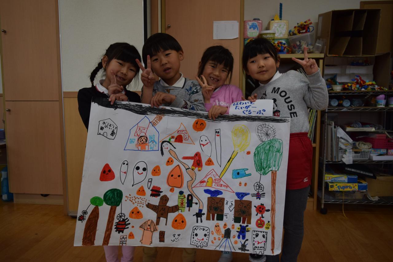 それぞれまわりに絵を描き足し、素敵な絵が出来ました🙂