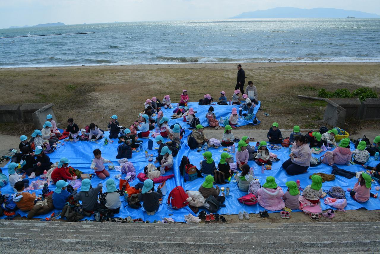 うみを見ながらのお弁当🍙友だちと見せ合いっこしながらいただいていましたよ