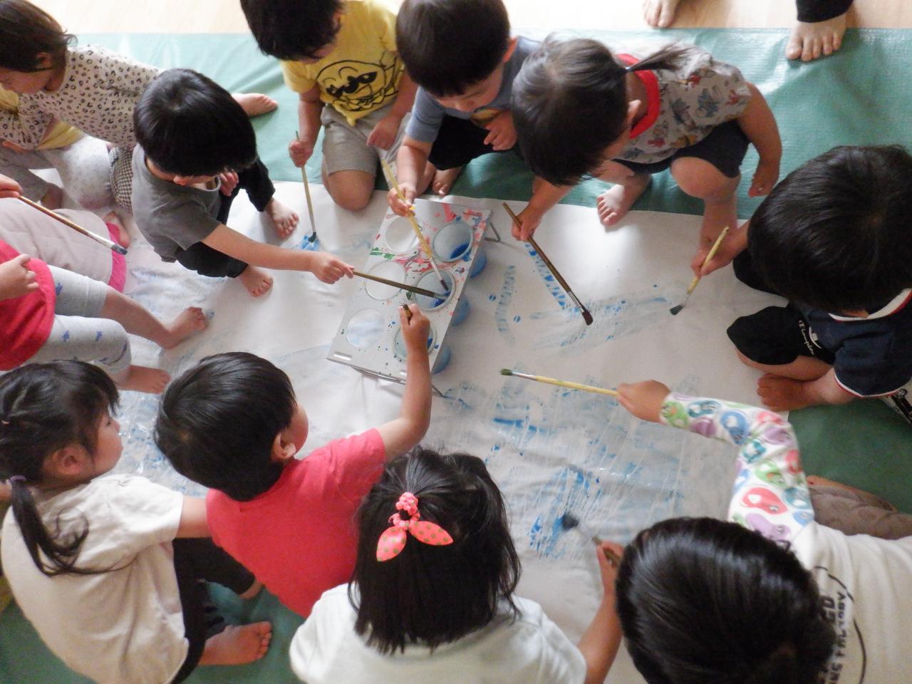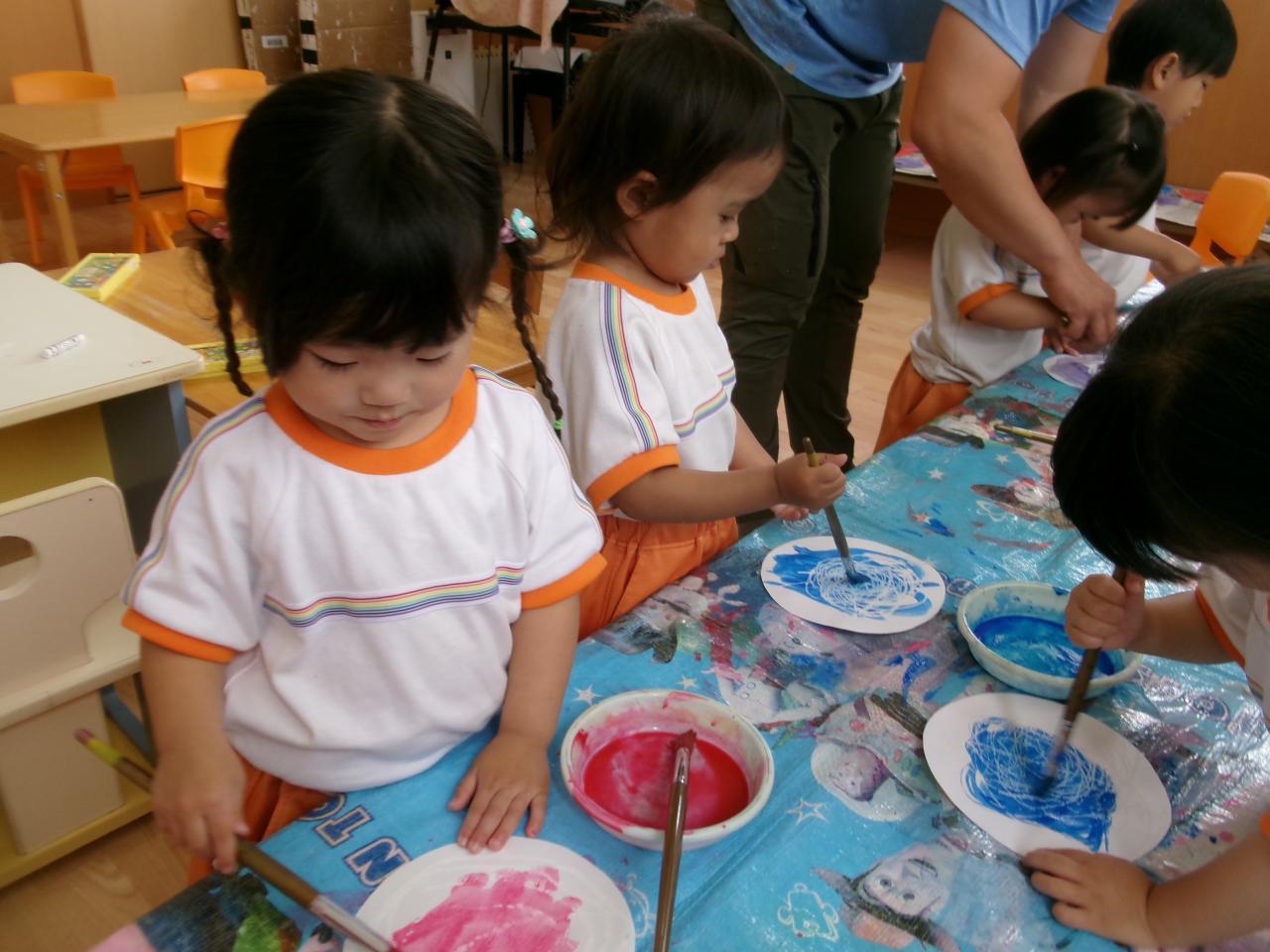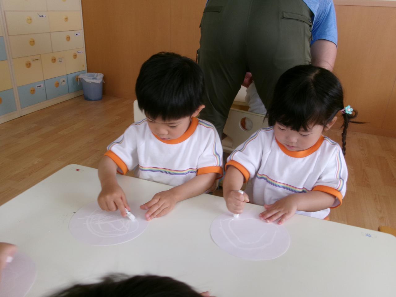 今回は、はじき絵に挑戦しました!絵の具の色を何種類か用意していましたが、それぞれ好きな色を選んで挑戦!色が浮き出てくるのを見て、皆大興奮でした😆