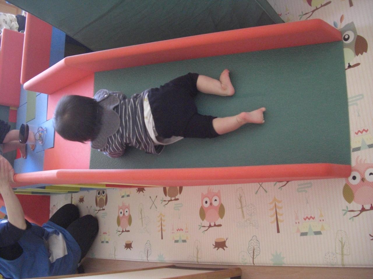 粗大運動では、トンネルをくぐったり、高いマットを乗り越えたりと存分に体を動かして楽しんでいます😀