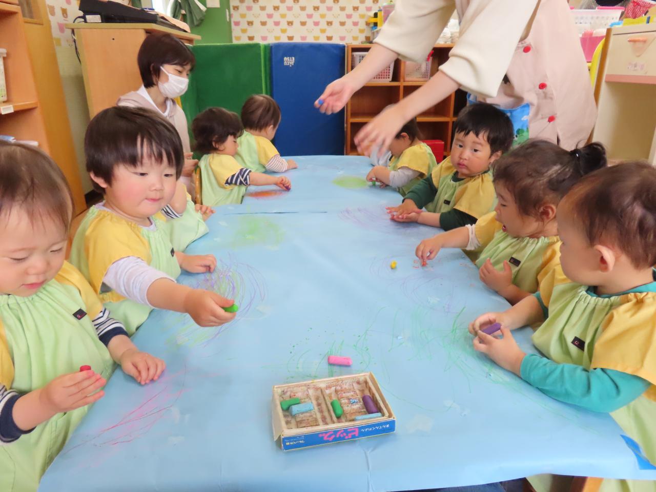 クレヨンで自由にお絵かき!みんなで描いたものが大きな雲に🌧