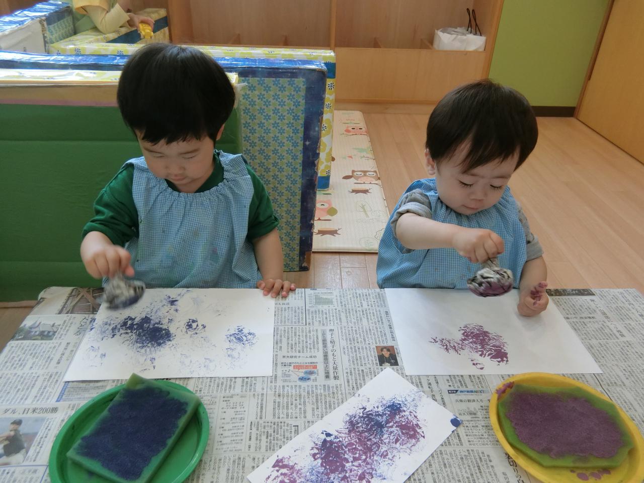 新聞紙ならではの模様ができてとてもおもしろいです🙆