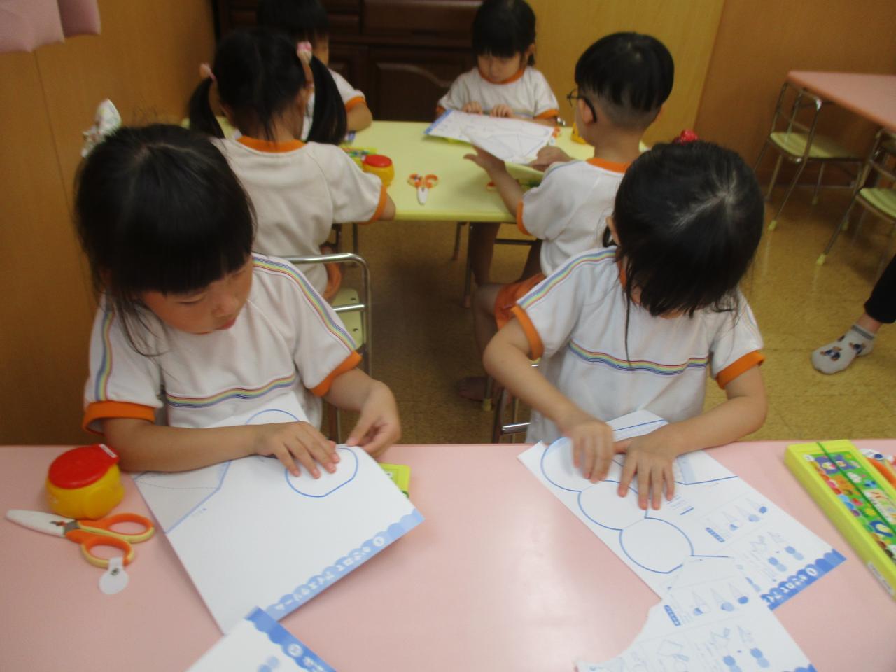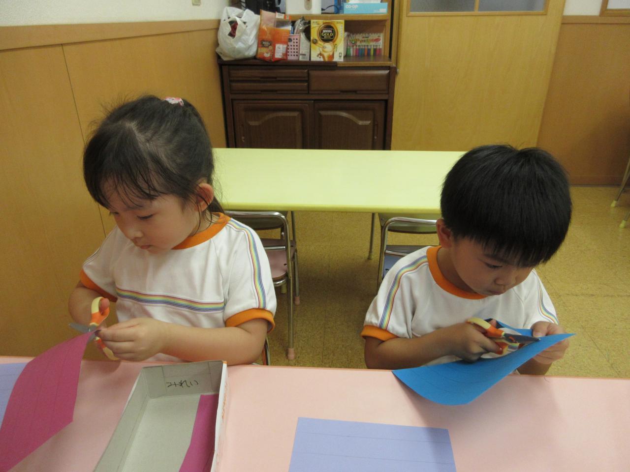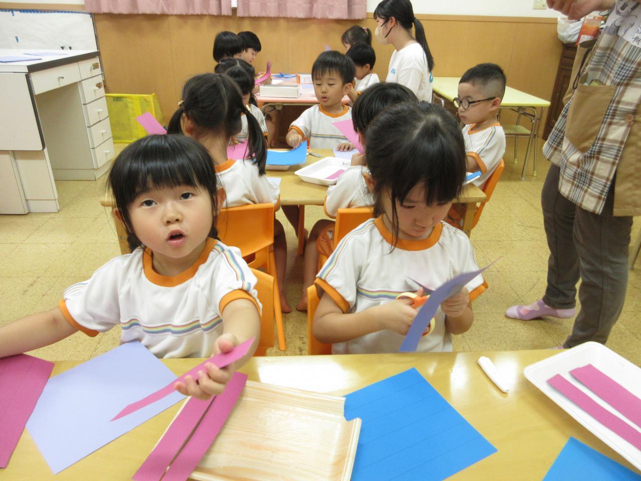 初めに画用紙を線に沿って切っていきます。それぞれのペースで丁寧に切っています👏。