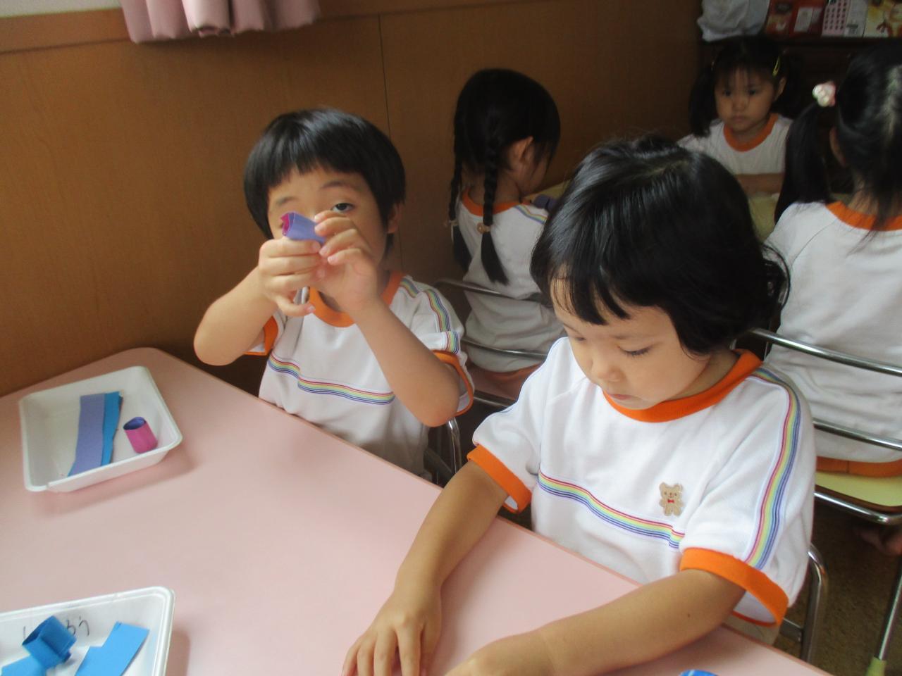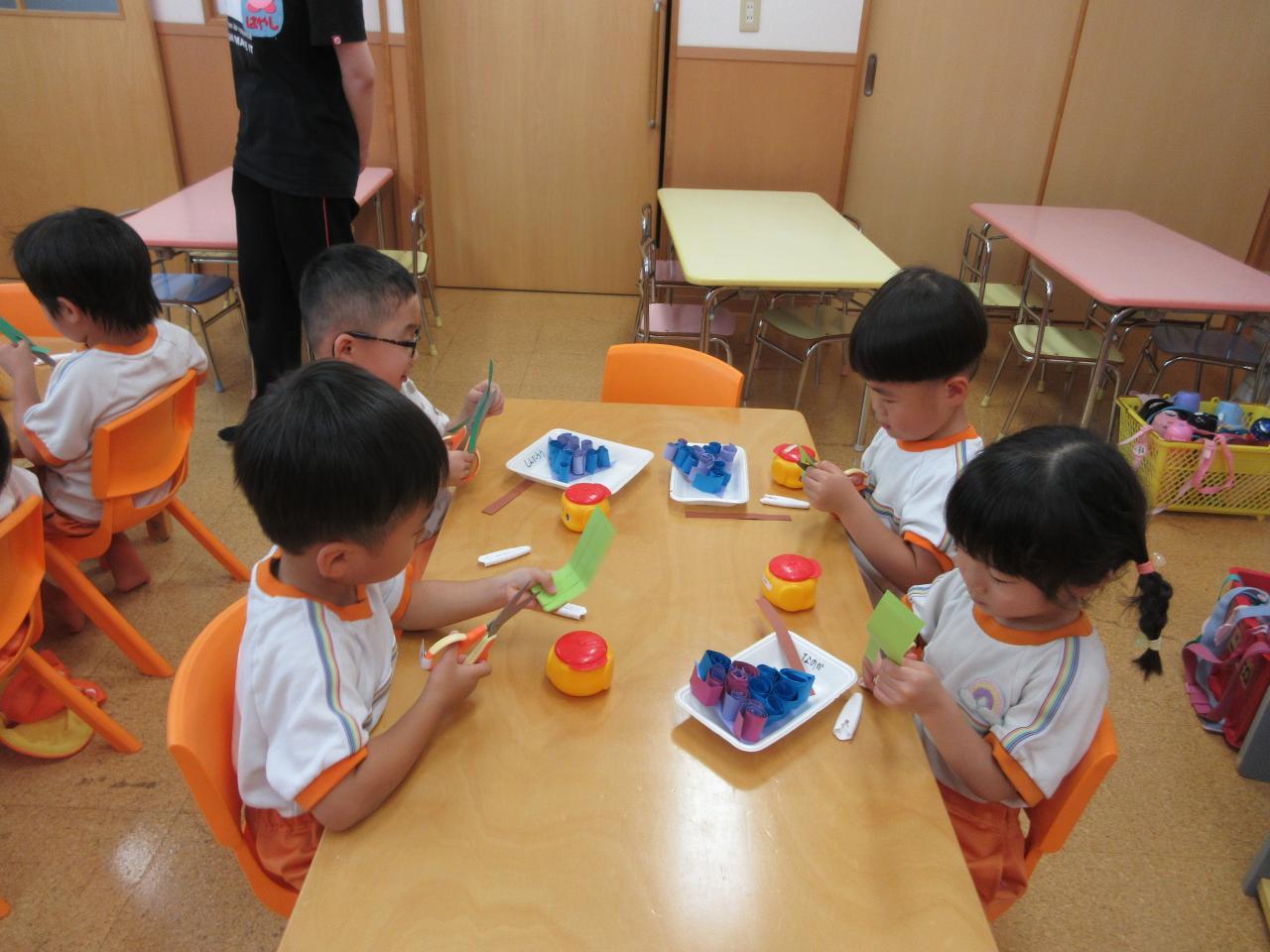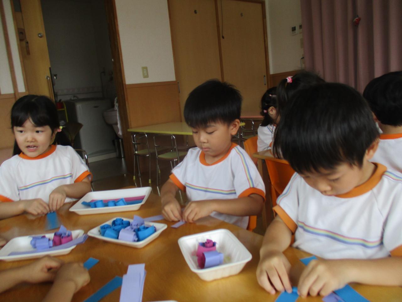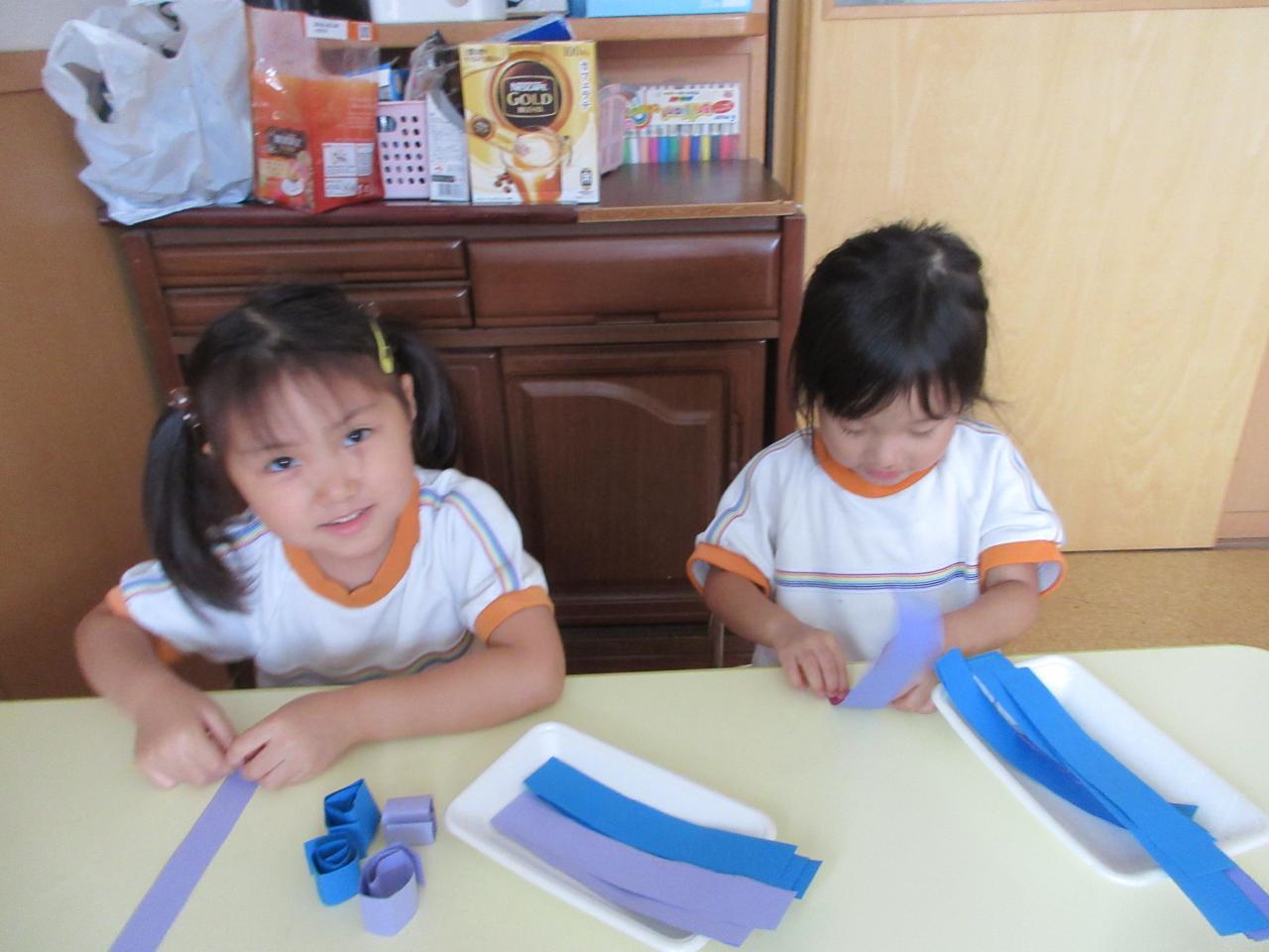 葉っぱは画用紙を切った後、輪っかになるようにのりを付けます。