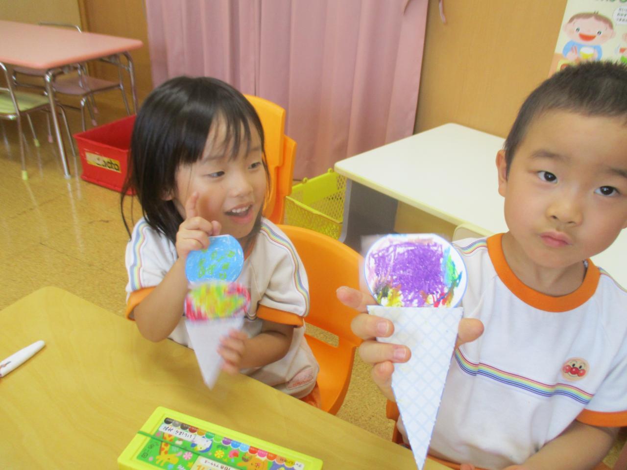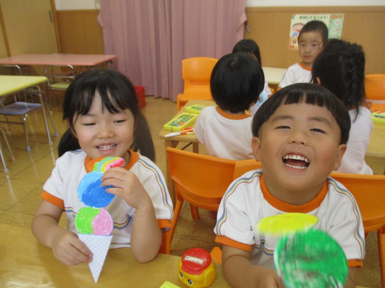 まずは、月刊絵本付録の工作から、アイスクリーム作りのご紹介🍦