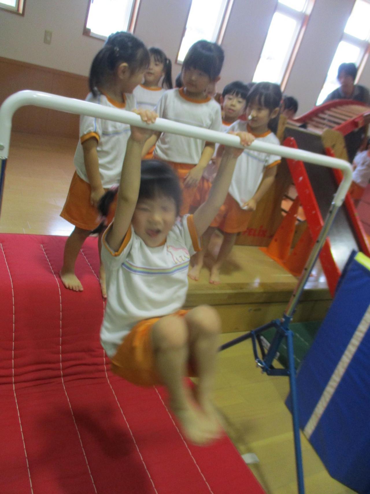 平均台や肋木を渡ったり、鉄棒でぶら下がったりと遊びながら力をつけていきます💪