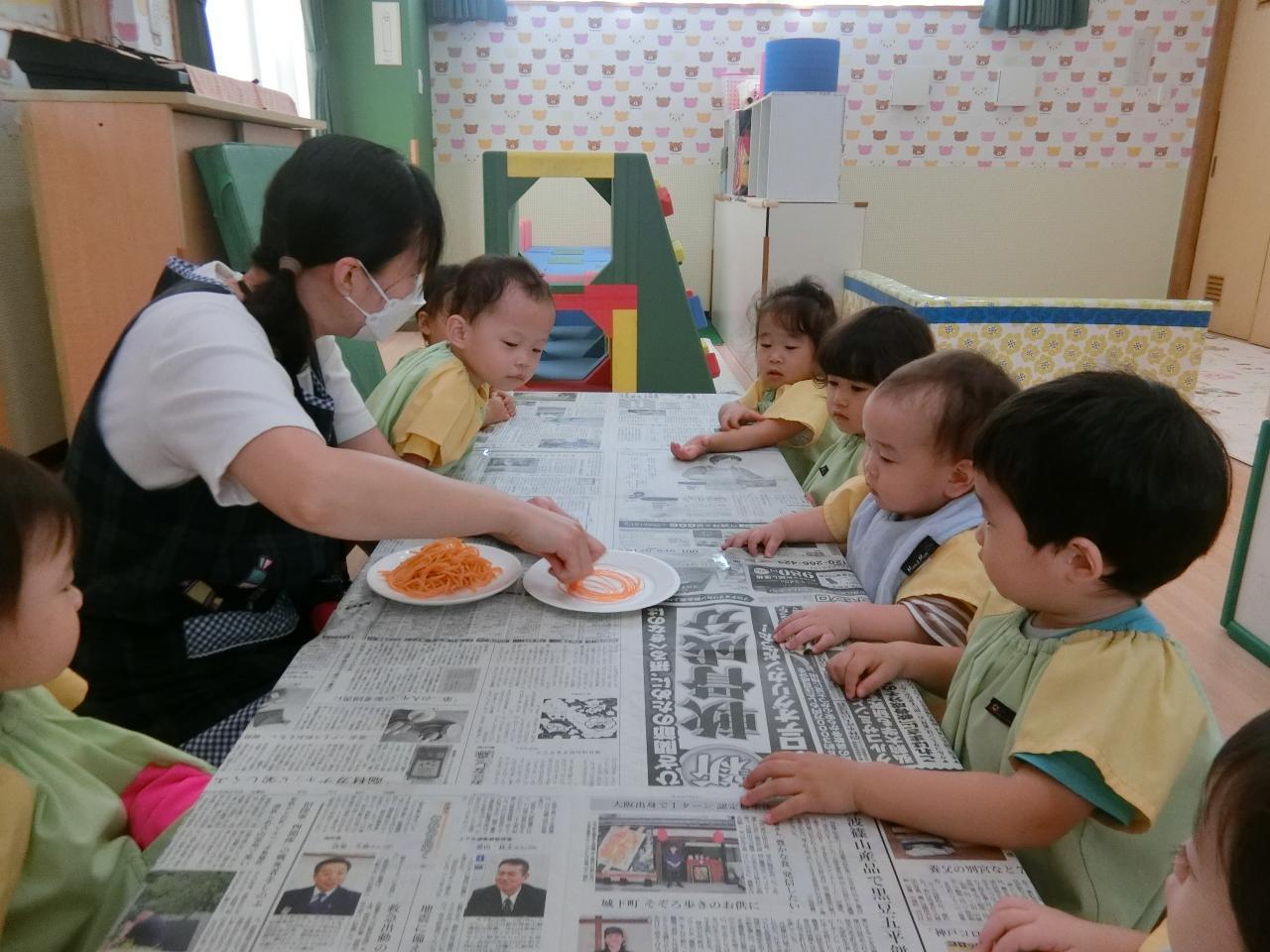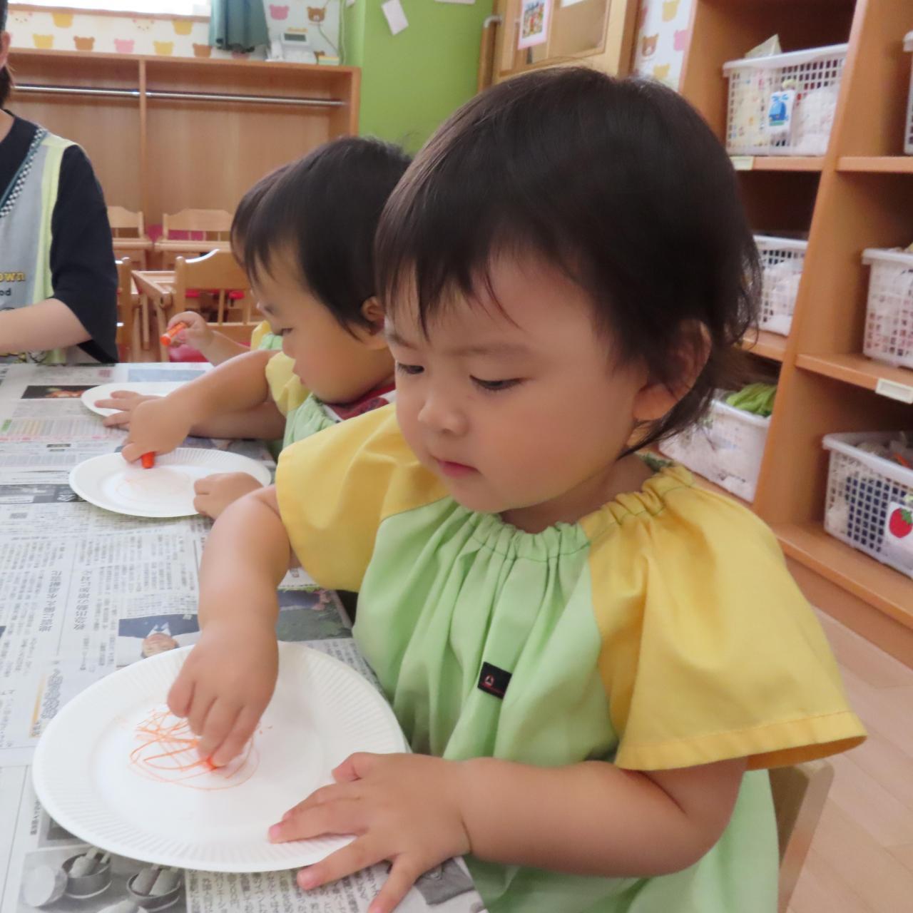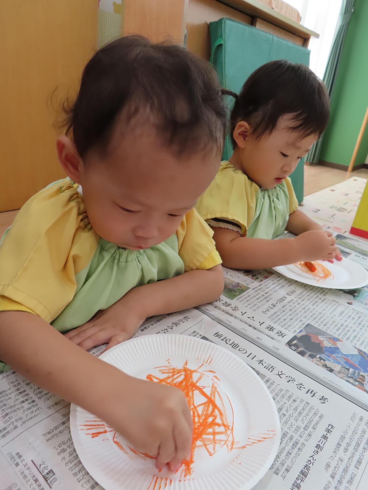 ぐるぐるお絵かきが上手になってきたので本物を見ながらクレヨンで”ぐるぐるスパゲティ”を作りました👏