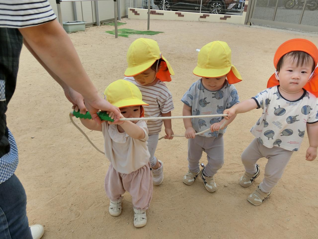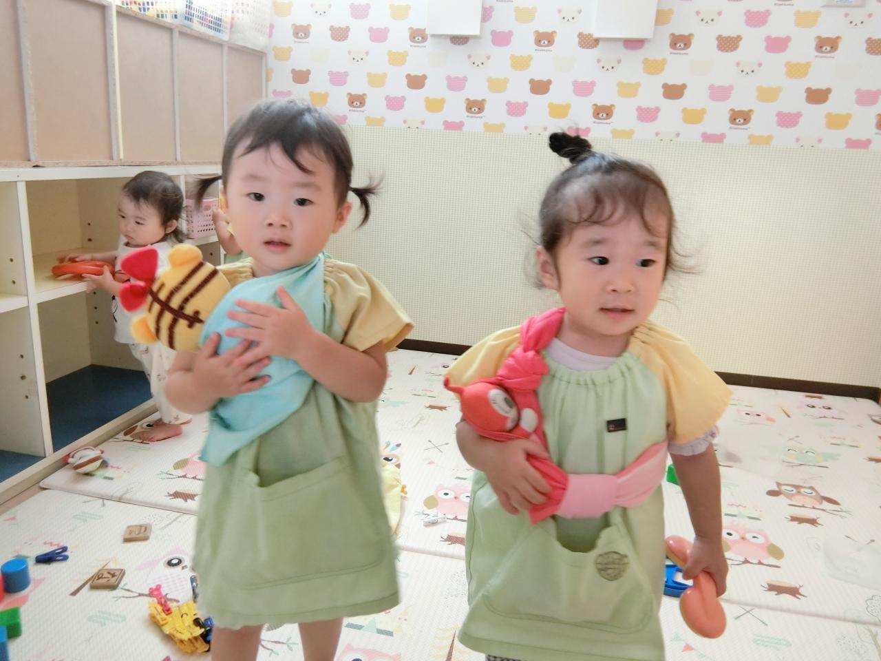 最近のたんぽぽ組さんはお人形をだっこするのが大好きで、大きな布を持ってきては「して~!」と抱っこひもをしてお世話しながら遊んでいます🥰