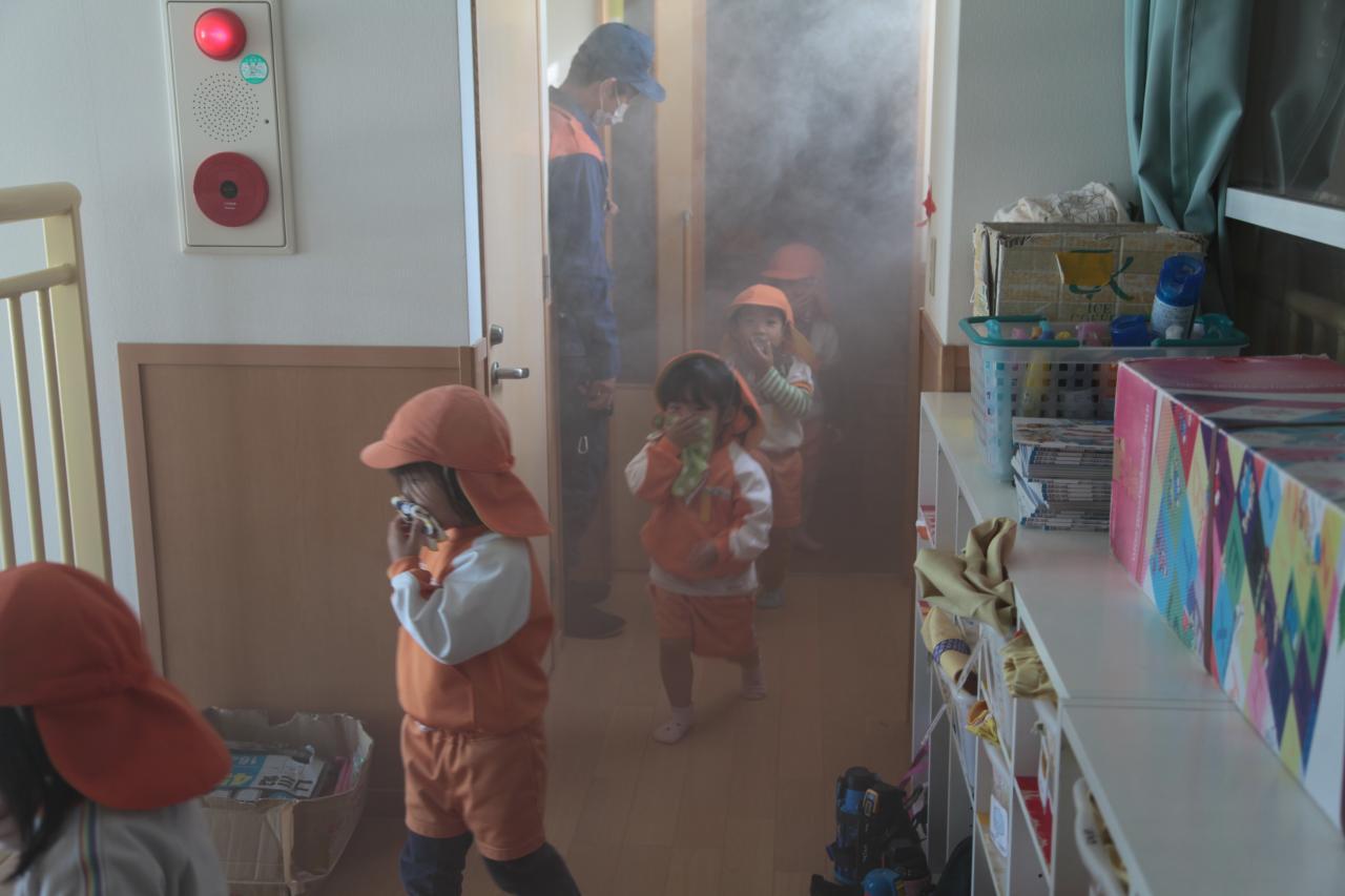 終わった後は「怖かった~😢」と言ってくる子もいました。今回の防災訓練で火事の怖さを経験する機会になり、良かったと思っています。
