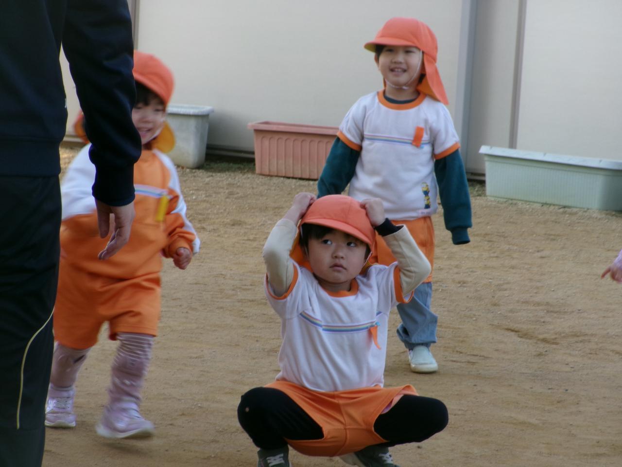 子ども達は、鬼役の先生から逃げ、もしタッチされてしまったら、おいものポーズ❗おいもになってしまった子も、友達から持ち上げてもらったら復活です😄