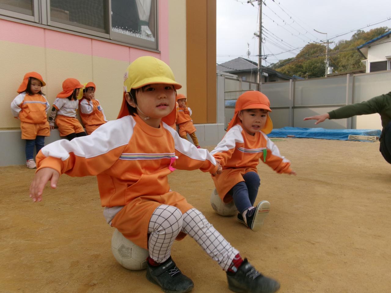 この日はボールを転がしたり、ボールの上に乗ったりして遊びました😆ボールの上に乗るのでは、乗るだけでなく、足も上げます😳皆難しいかな?と思っていましたが、皆安定感抜群でした(笑)👏