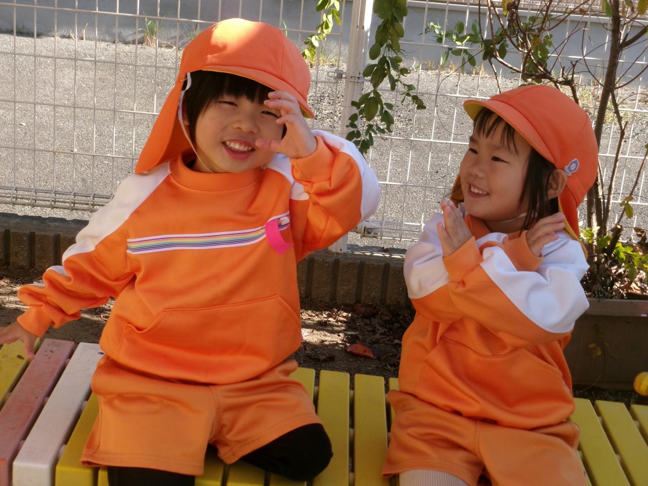 外遊び中、2人で話し合い、ポーズをしていたので思わず撮ってしまいました(笑)