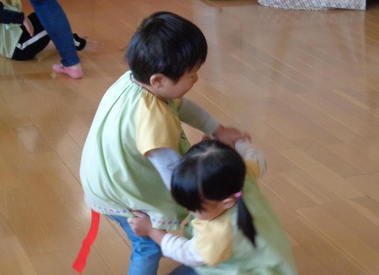 最近はルール遊びをして、勝てて嬉しい気持ち、負けて悔しい気持ちを知ることができるように関わっています。ボール運びリレーや椅子取りゲーム、しっぽ取りなどをしてみました🙂