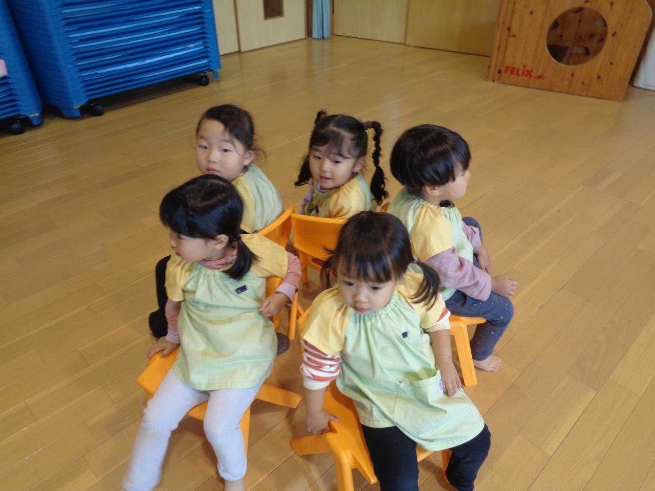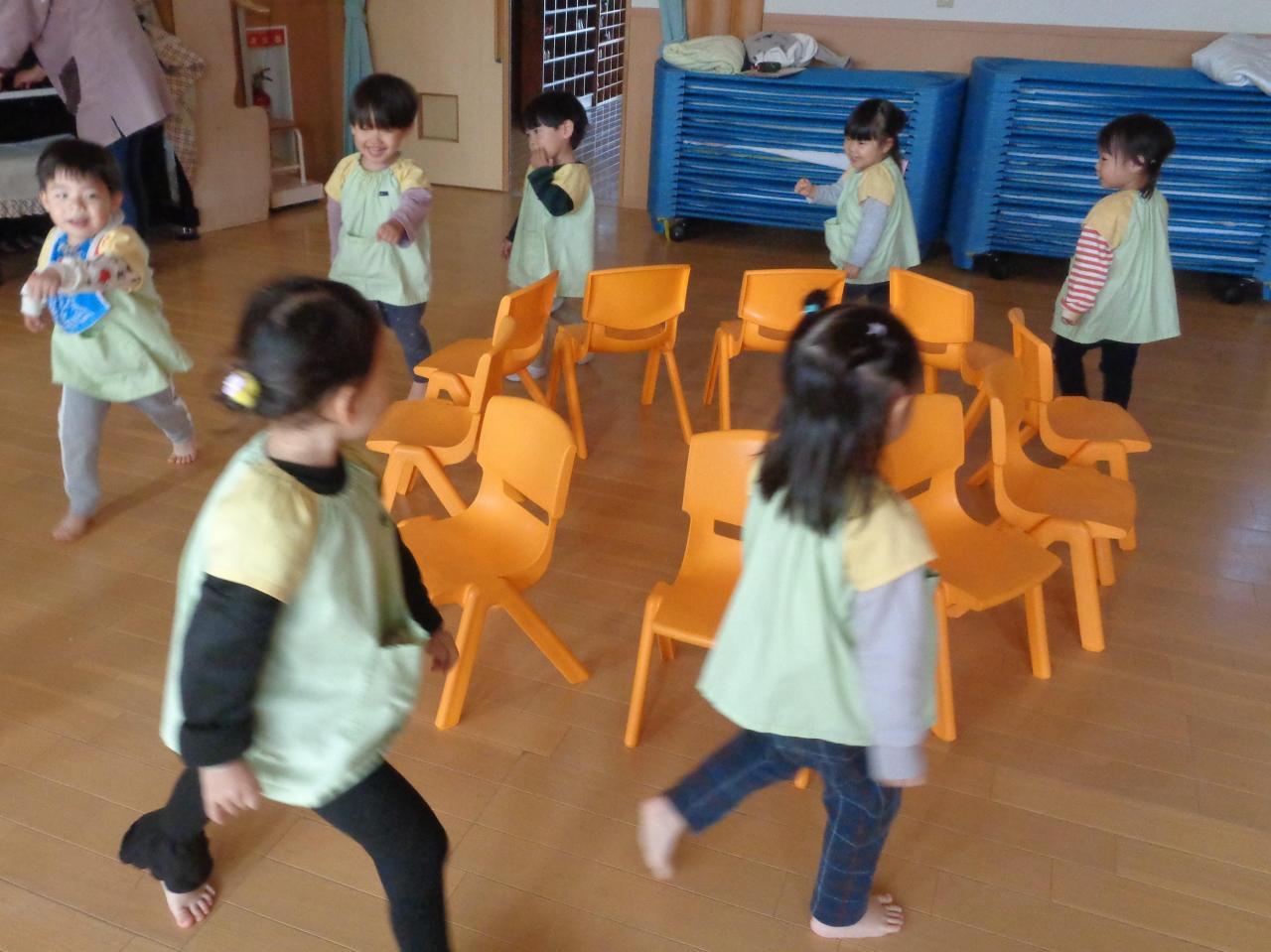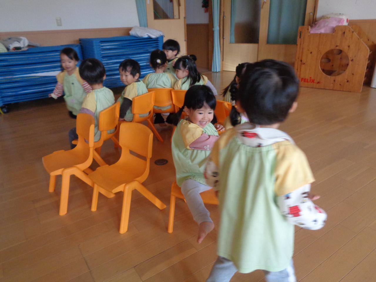 椅子取りゲーム、、、音楽が止まったら座るよ