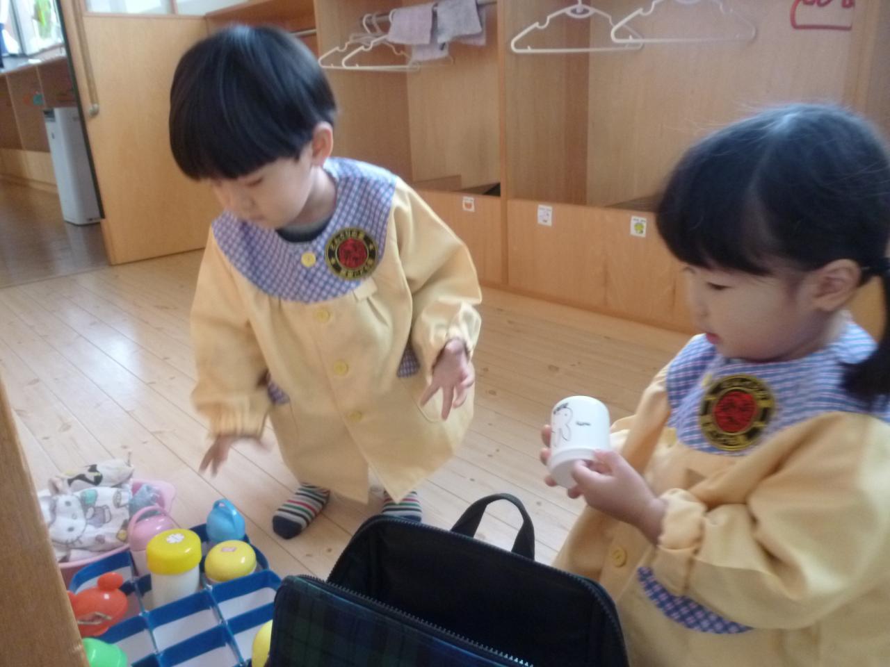 ゆり組さんは、身の回りの事を自分でよく頑張っています💪お部屋に戻ったらまず、朝の準備😀リュックの中からお手帳、おしぼりケースを出して準備します