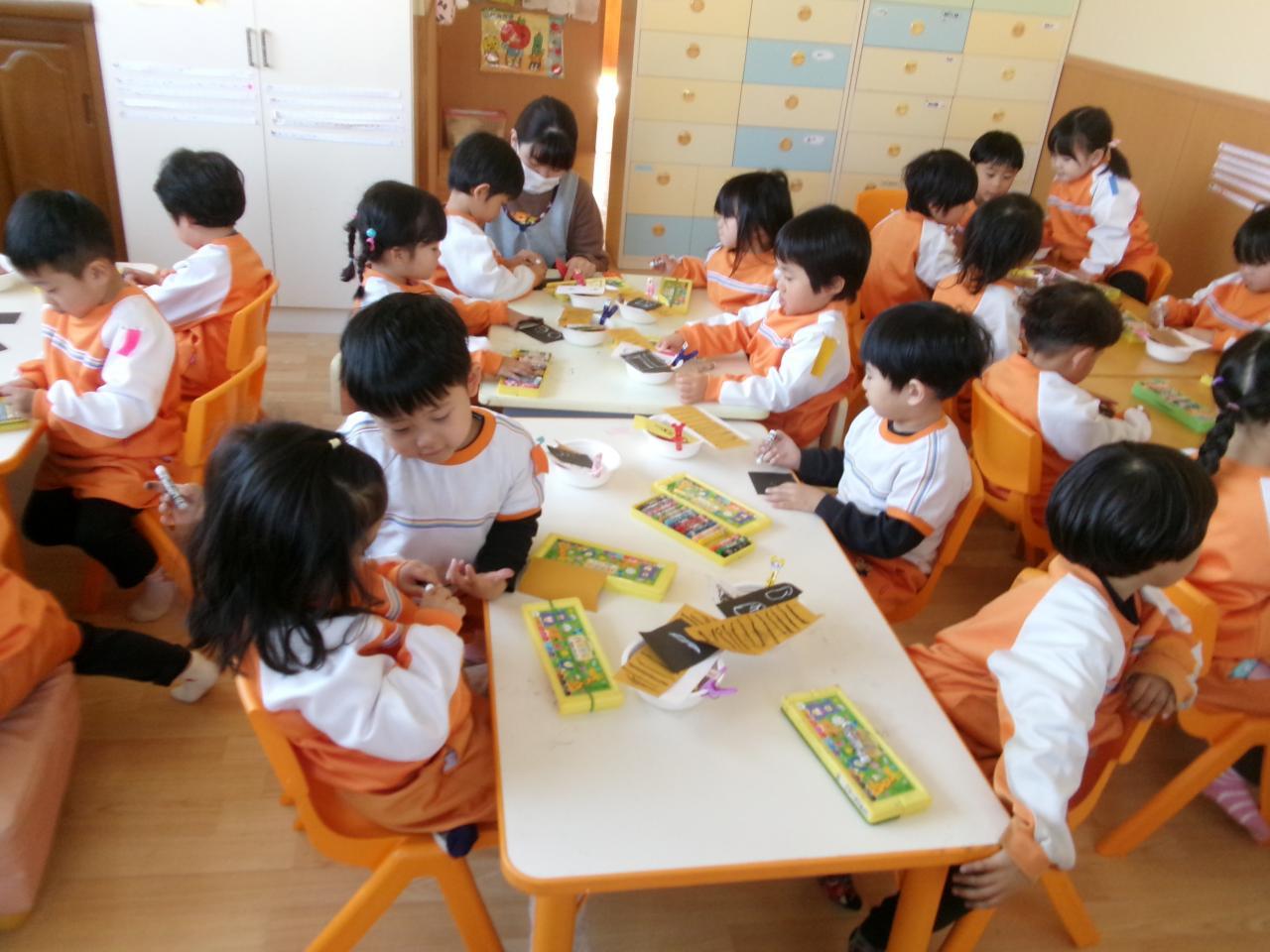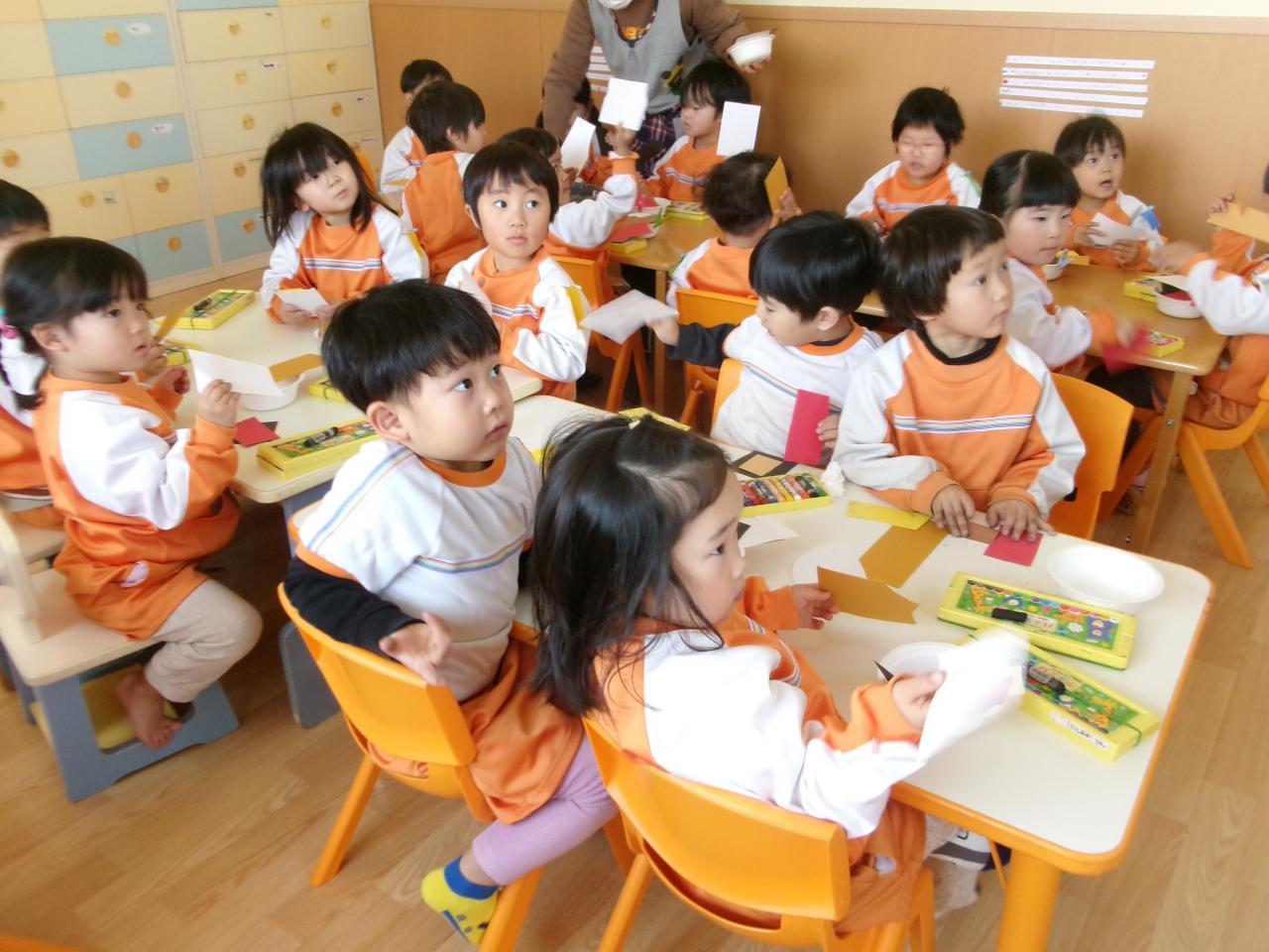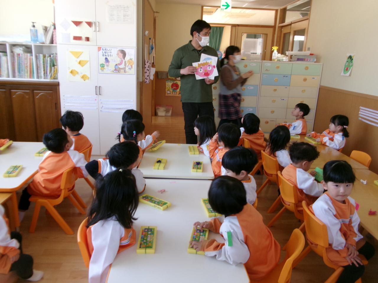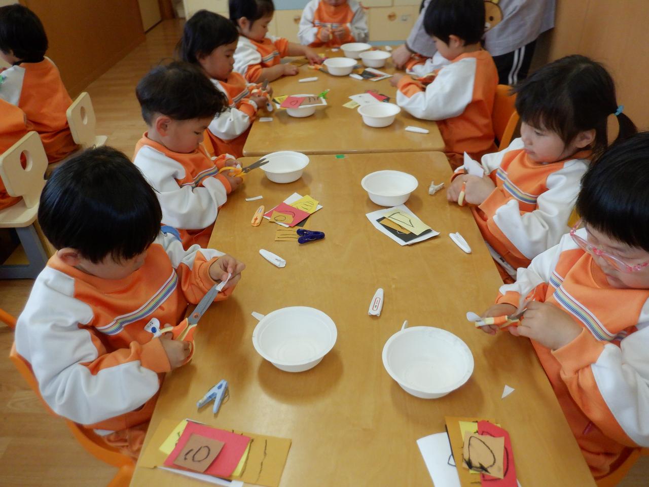 製作の最初、鬼を作ると聞いたつき組さん。「家にあるで~」「作ったことあるで~」など様々な反応をしており、さっそく製作開始です😆