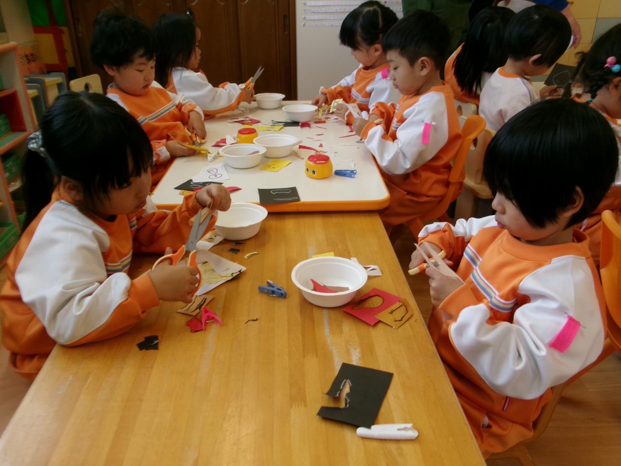 自分達で描いたため、大きさはいろいろ・・・😅保育者全員切るのは難しいのかなと心配していましたが、自分でイメージをして描いたこともあってか、自身で修正して取り組む姿が見られました😳