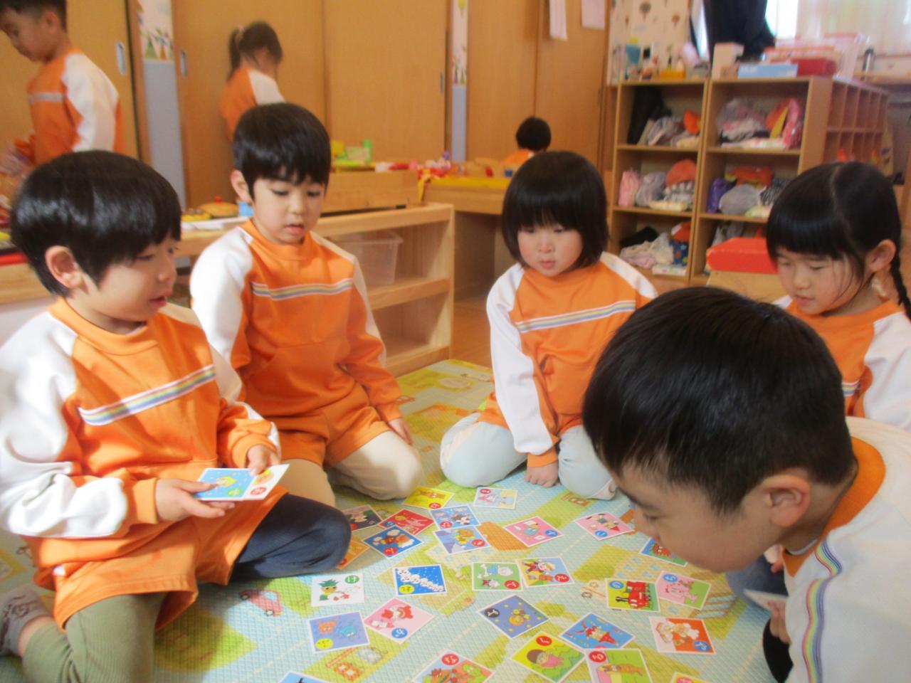 文字にも興味を持ち始め、読む子、取る子と自分達で決めて楽しく遊ぶ姿が見られるようになってきました!!