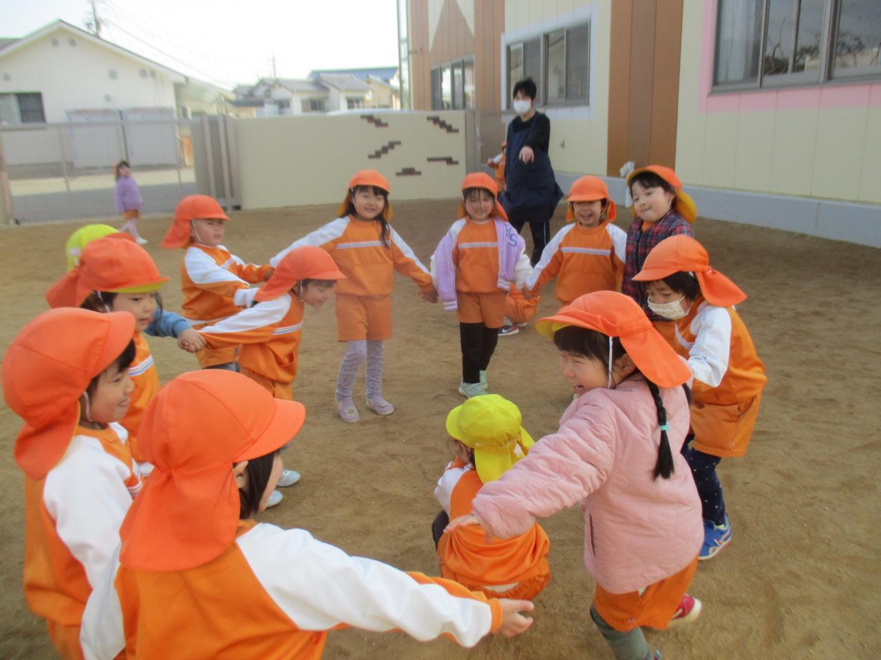 ルール遊びの中で、ルールを守る大切さや、勝ち負けの嬉しさや悔しさを保育者も一緒に遊びながら知らせていっています。