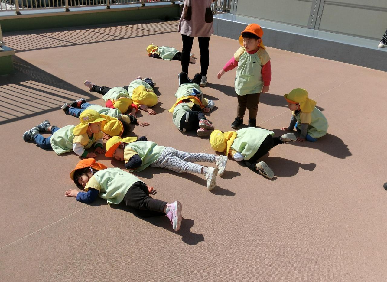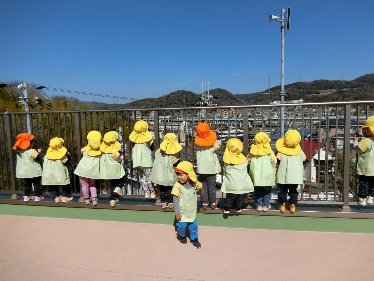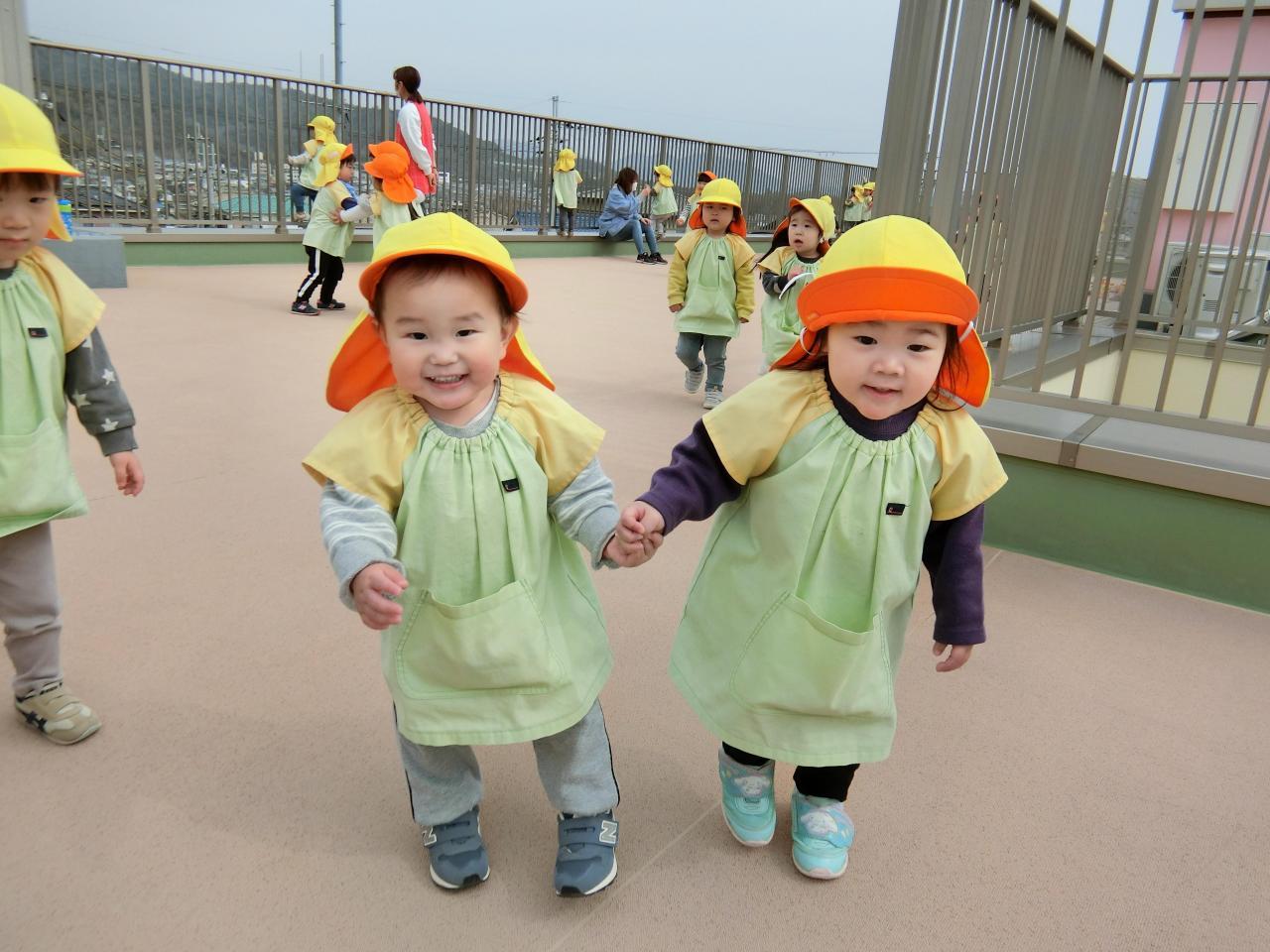 4月からゆり組さんになる練習で3階まで階段を登り屋上で遊びました✨
