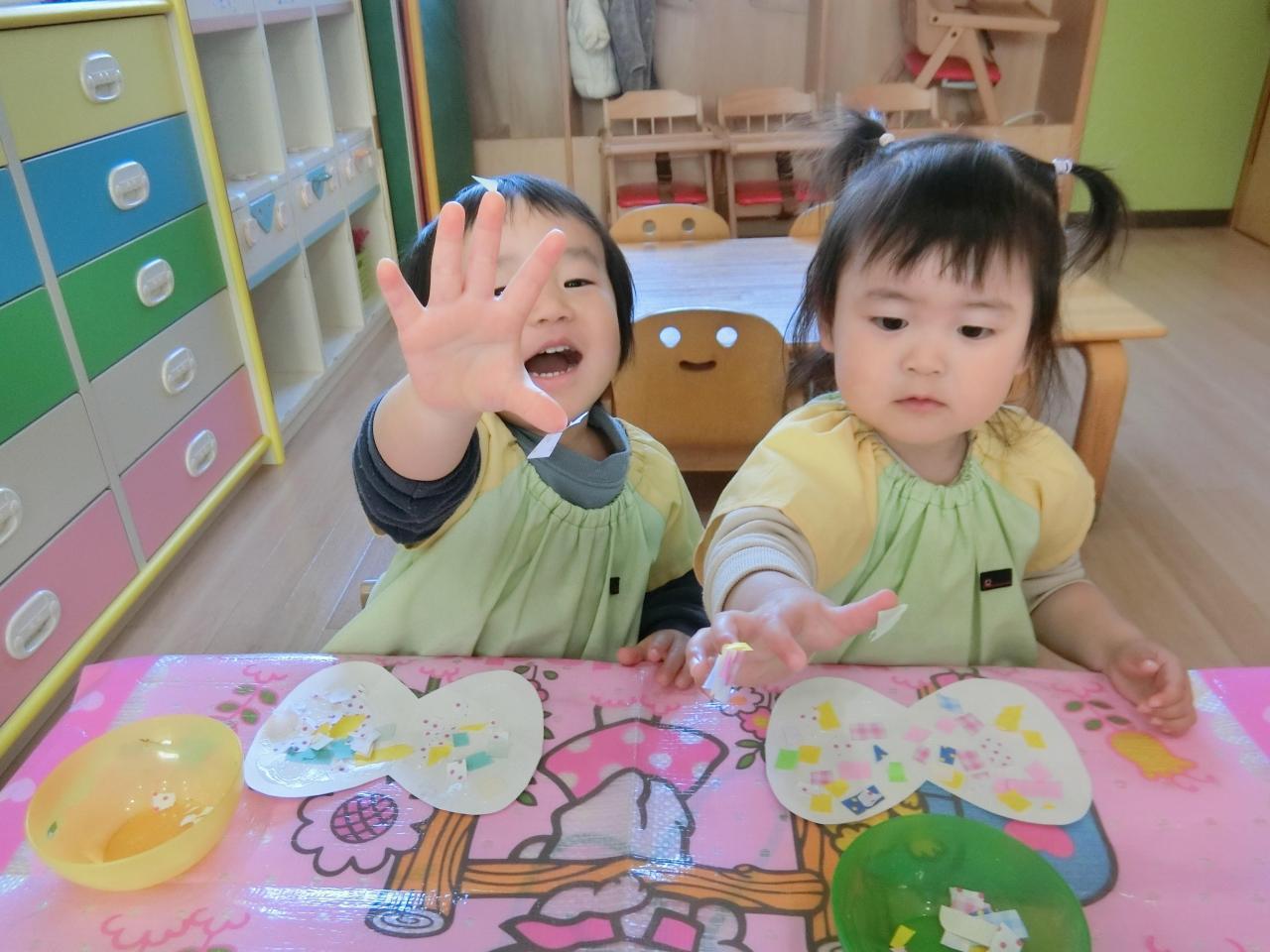 ちょうちょうの羽にはノリを塗って切った紙をペタペタ貼ります🙆