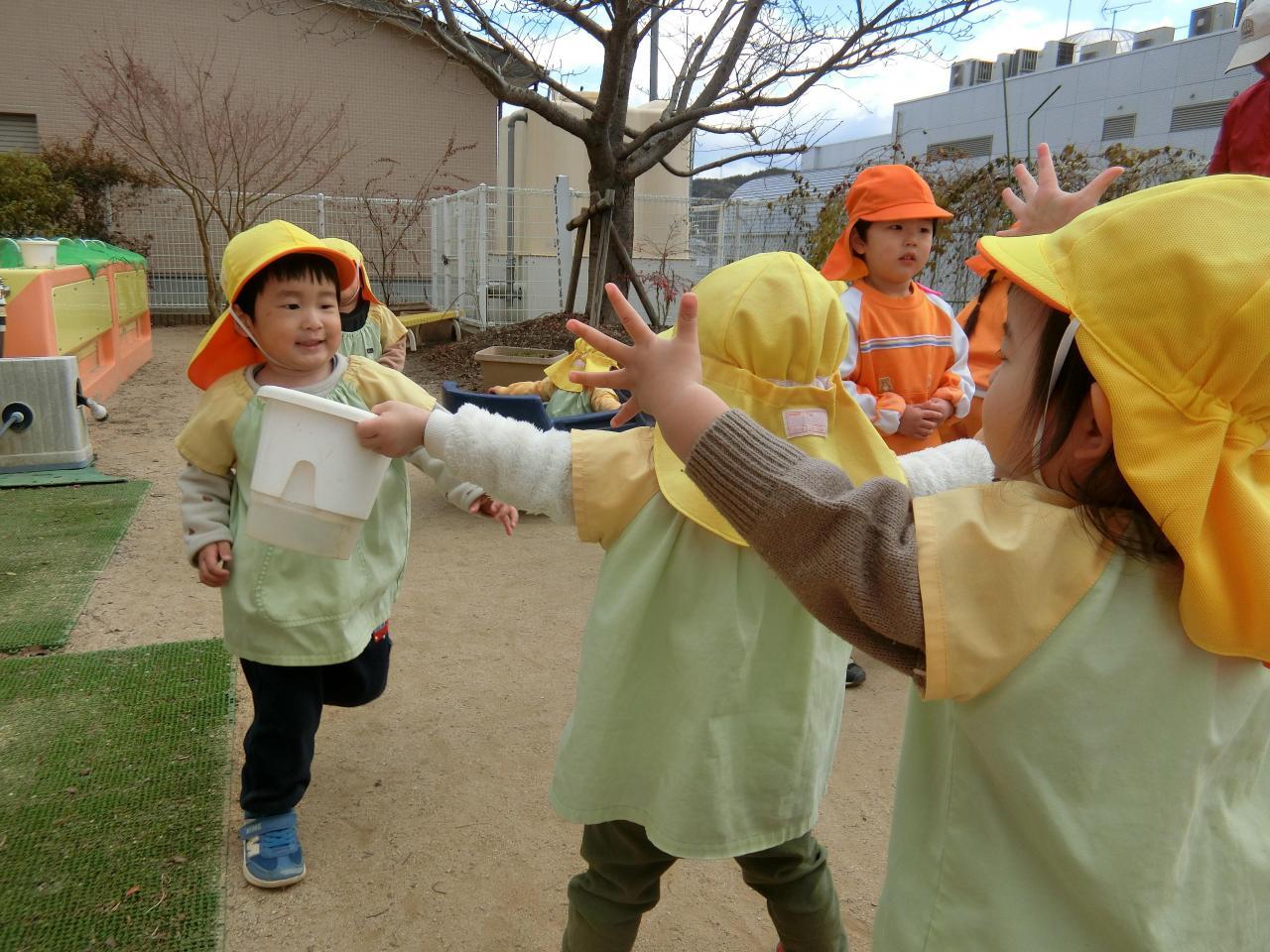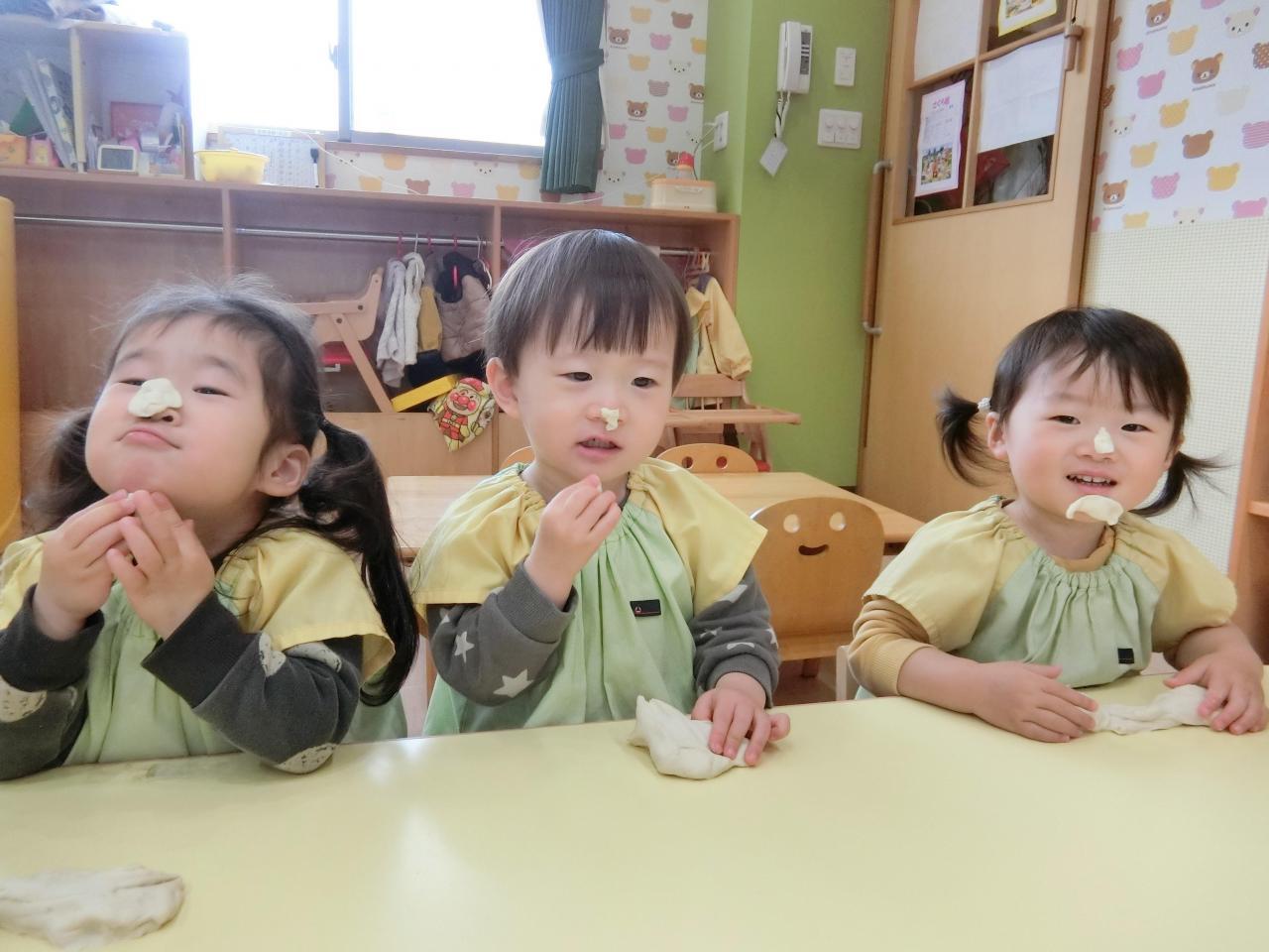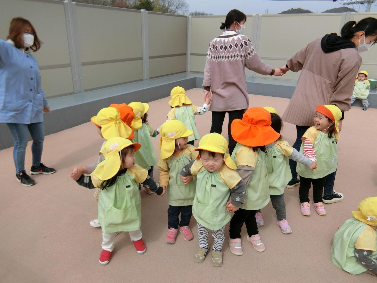 初めてお父さん、お母さんから離れ慣れない環境で泣いてばかりのたんぽぽ組さんでした。しかし今では仲の良いお友達もでき沢山のお話を聞かせてくれるようになり、出来ることが沢山増えた1年間でした。色々な姿を近くで見守れたことをとても嬉しく思っています。至らぬ点も多々あったかと思いますが日々の保育にご協力いただきありがとうございました。