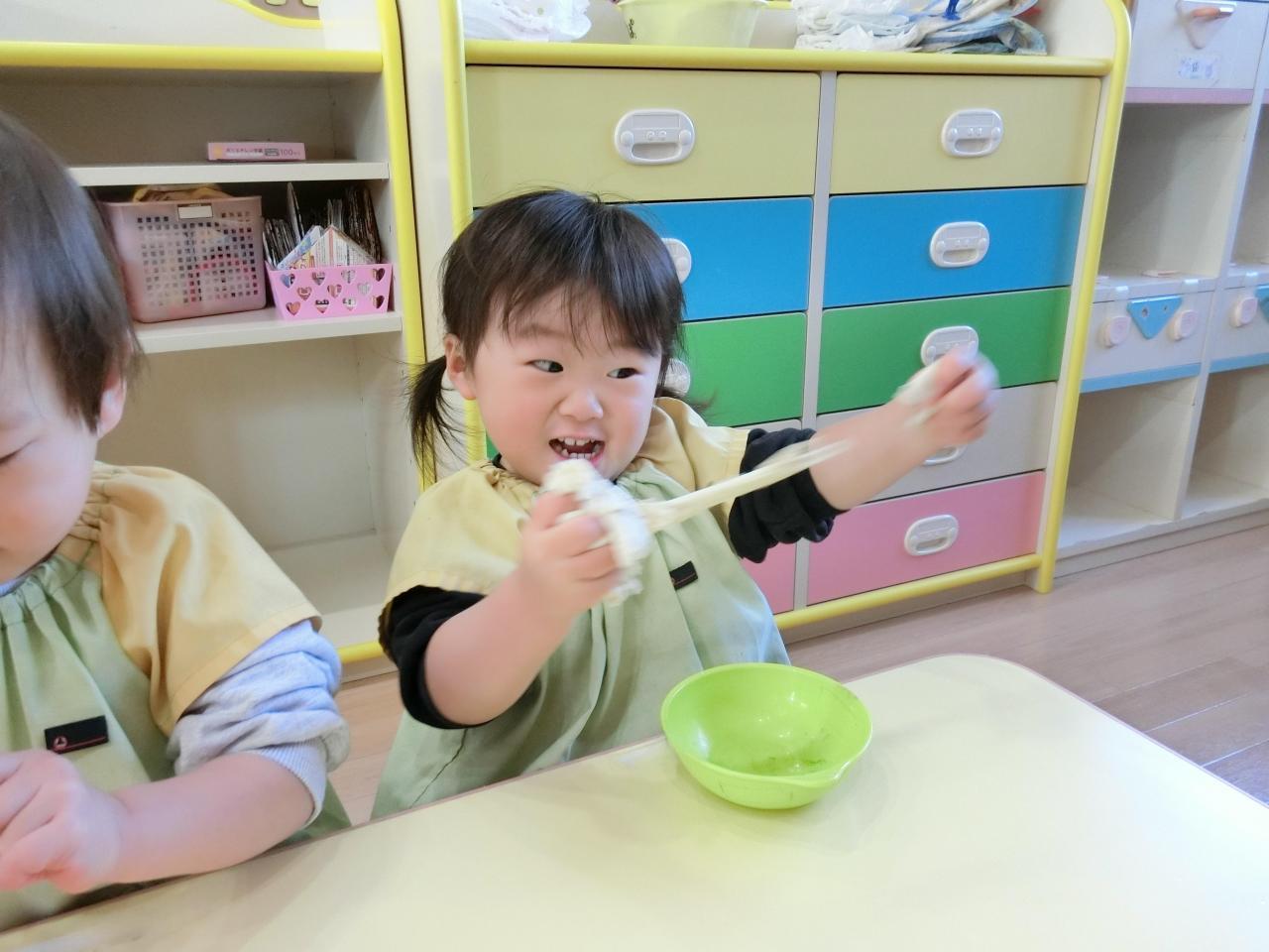 慣れない感覚や冷たさに驚く子もいましたが次第に慣れ、握ったりつぶしたりと普段はできない遊びを存分に楽しみました✨