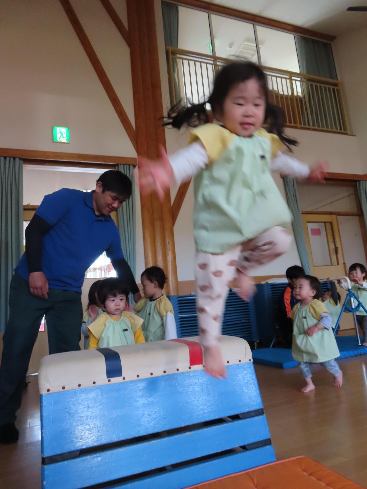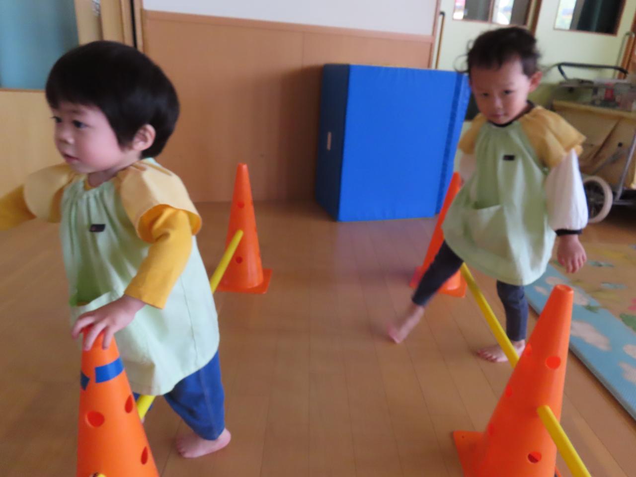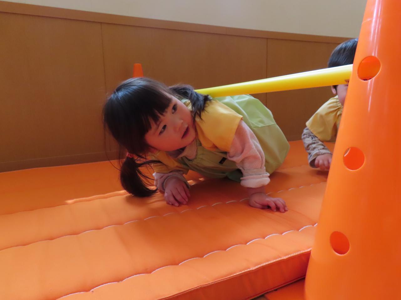次はサーキット遊びです!跳び箱の上を跳んだり、バーの下をくぐったりなどしました😄