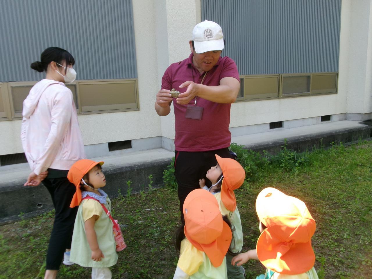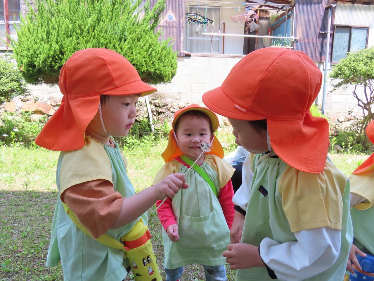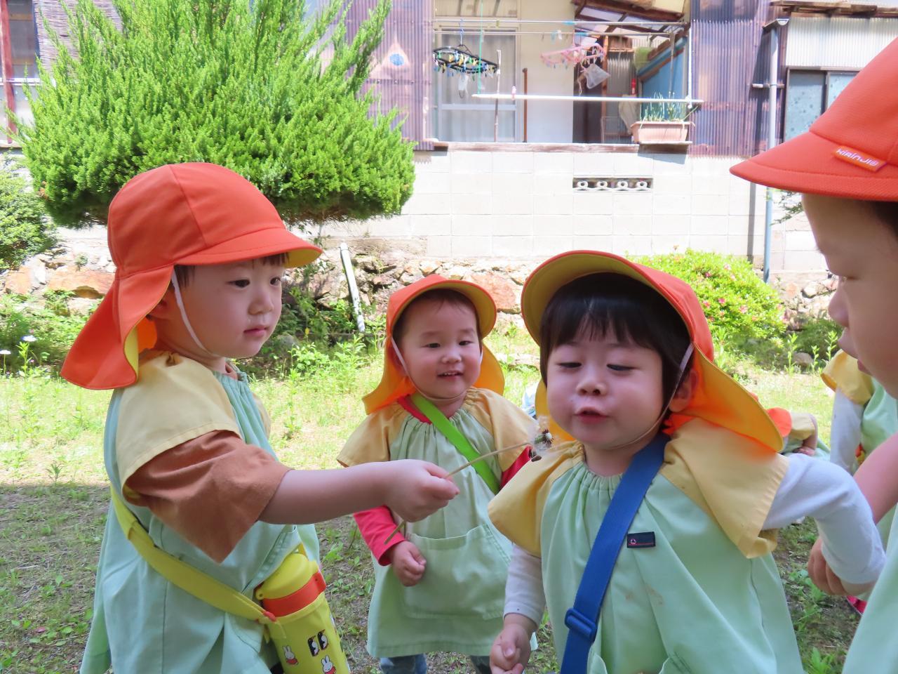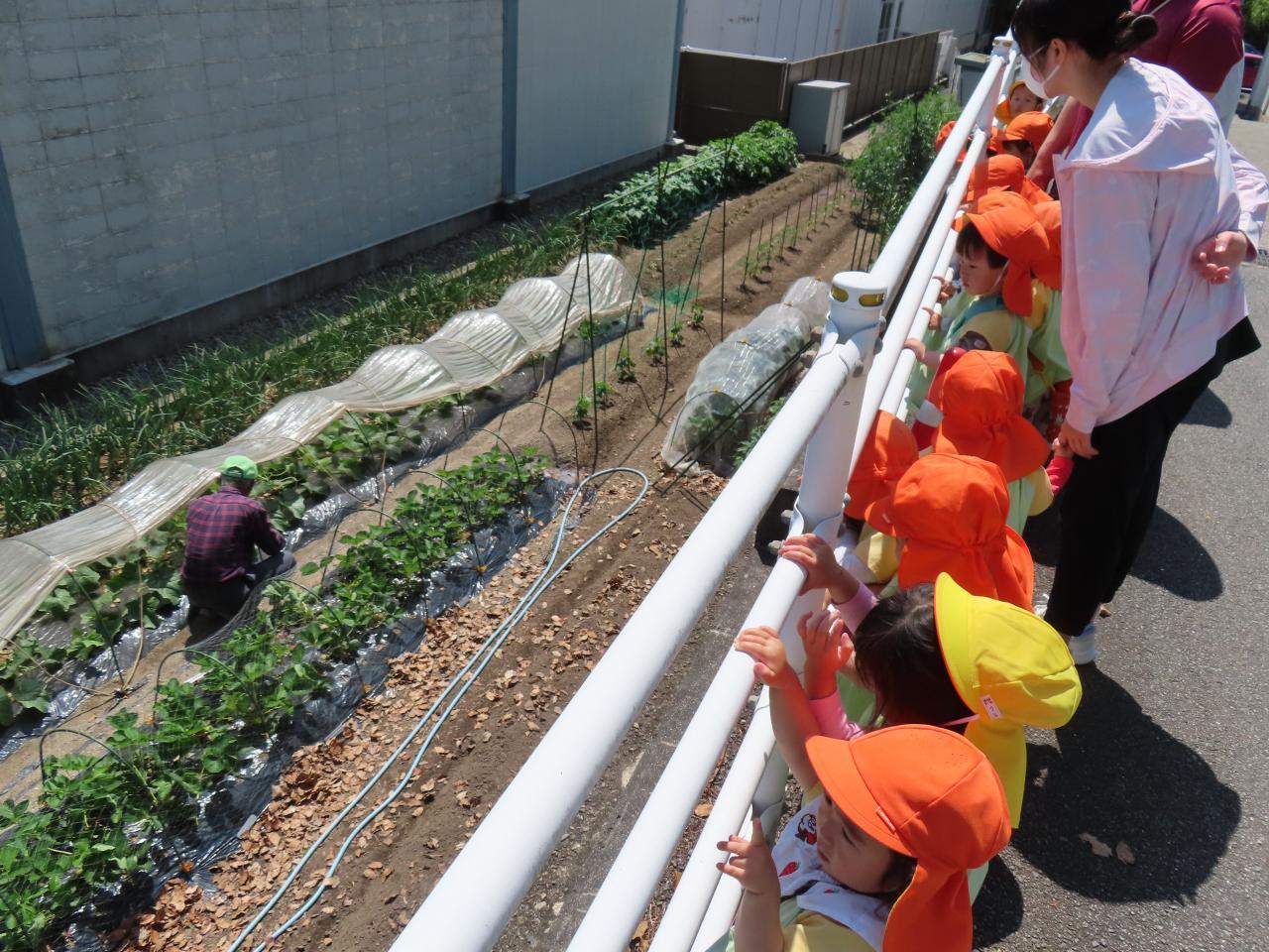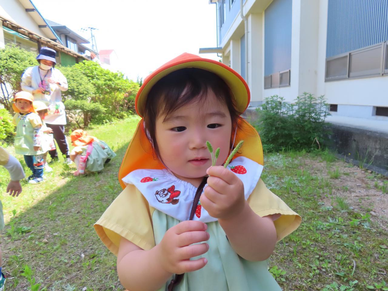 今回は、こども園の横にある中学校の周辺コースを散歩しました。中学校内で育てているイチゴを見せてもらったり、体育館の横の草原で花を見たり虫を探したりしました🙂
