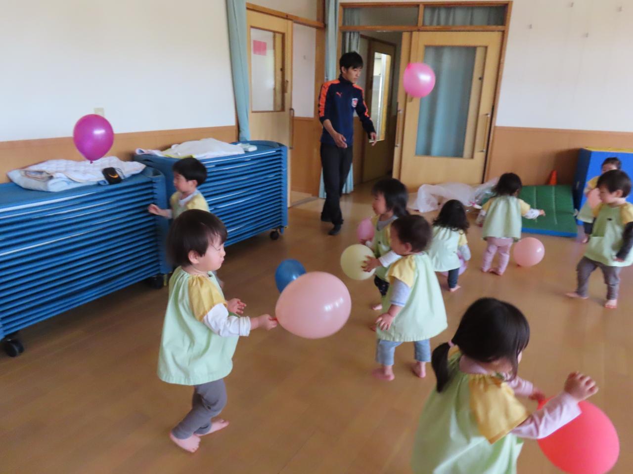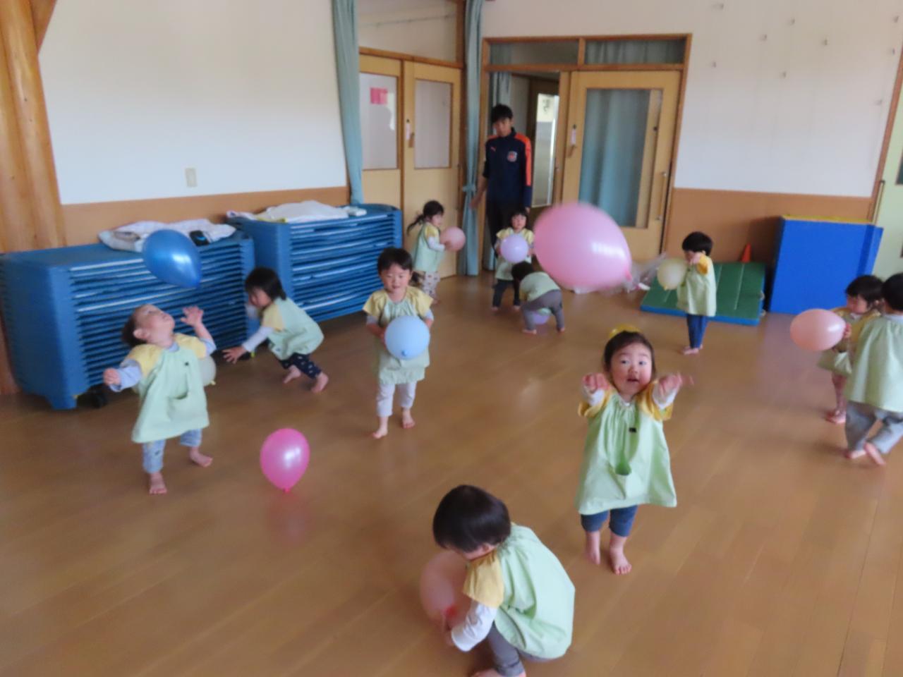 風船を上に投げたり、落ちてきた風船をキャッチしたりなど、楽しんで遊ぶ姿が見られました!