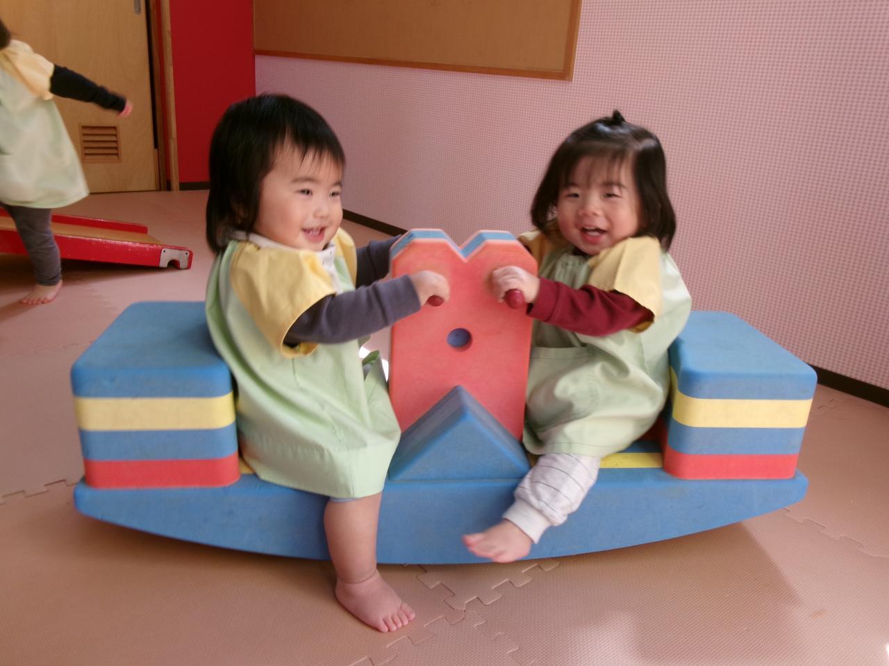 他にも滑り台やよじ登りができる遊具が置いてあったり、簡単なアスレチックを作り室内でも存分に体を動かして遊んでいます🙌
