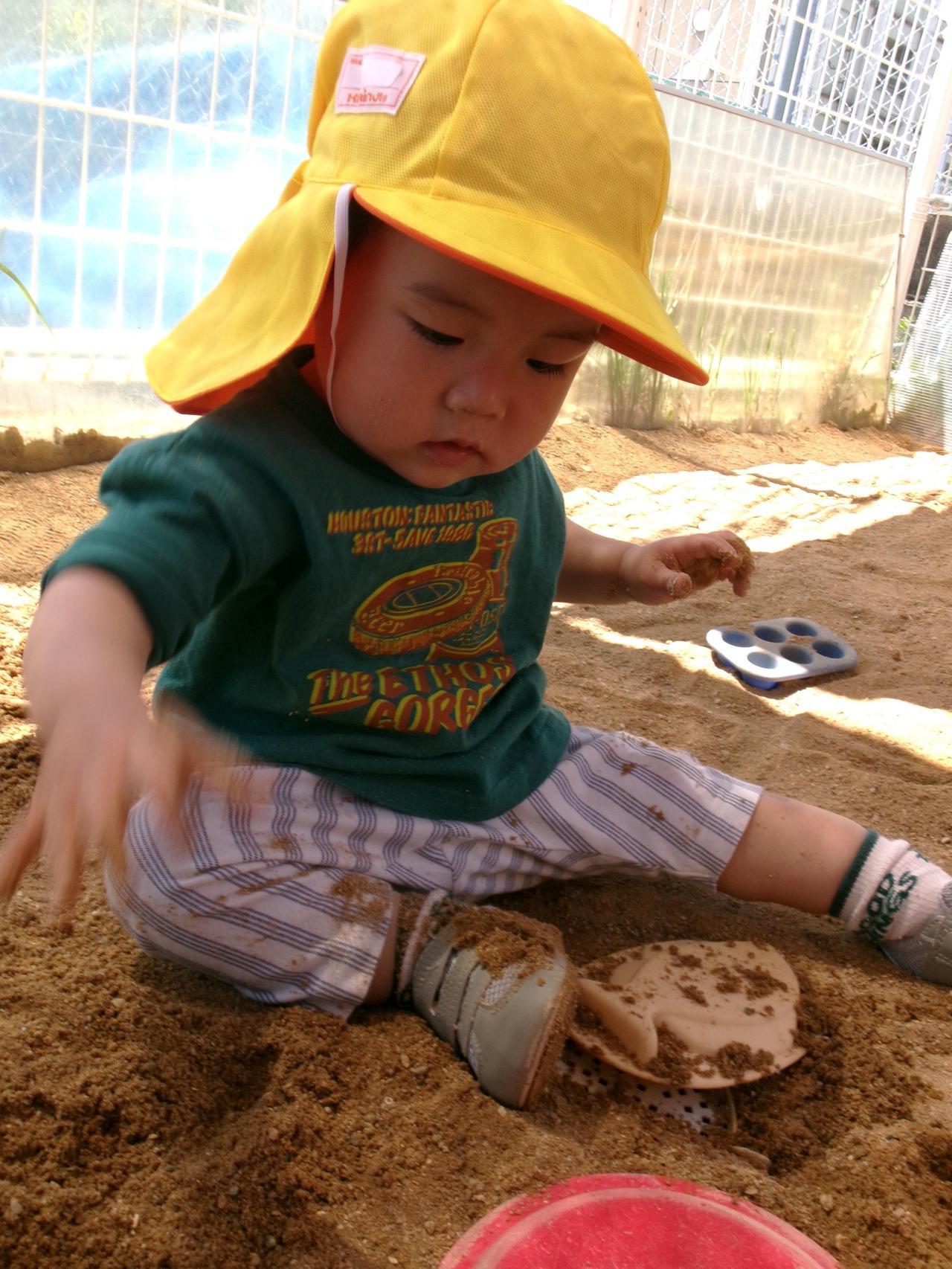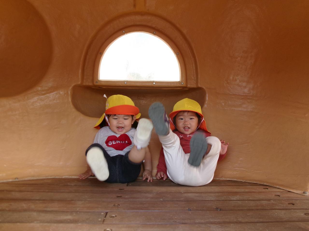 園庭に出ると大型遊具や砂場に大喜び✨