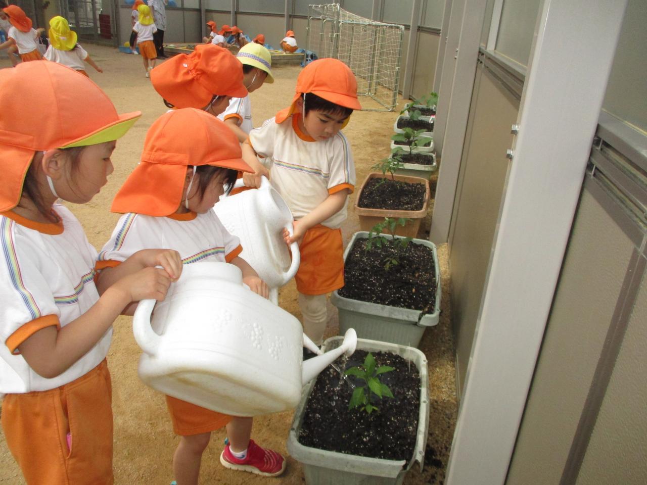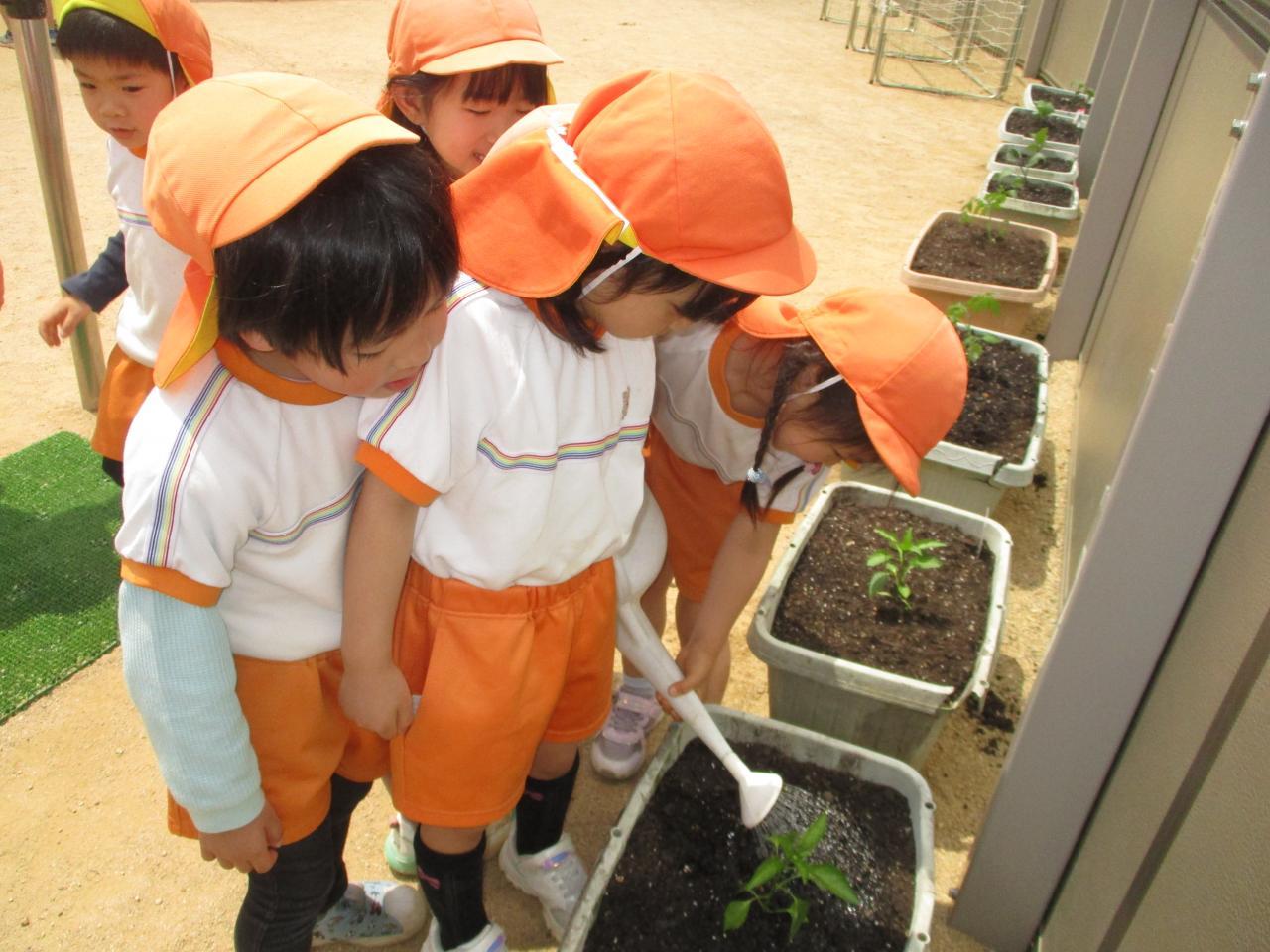 グループごとに当番制で毎日水やりを頑張っています。今から成長を楽しみにしています。✨