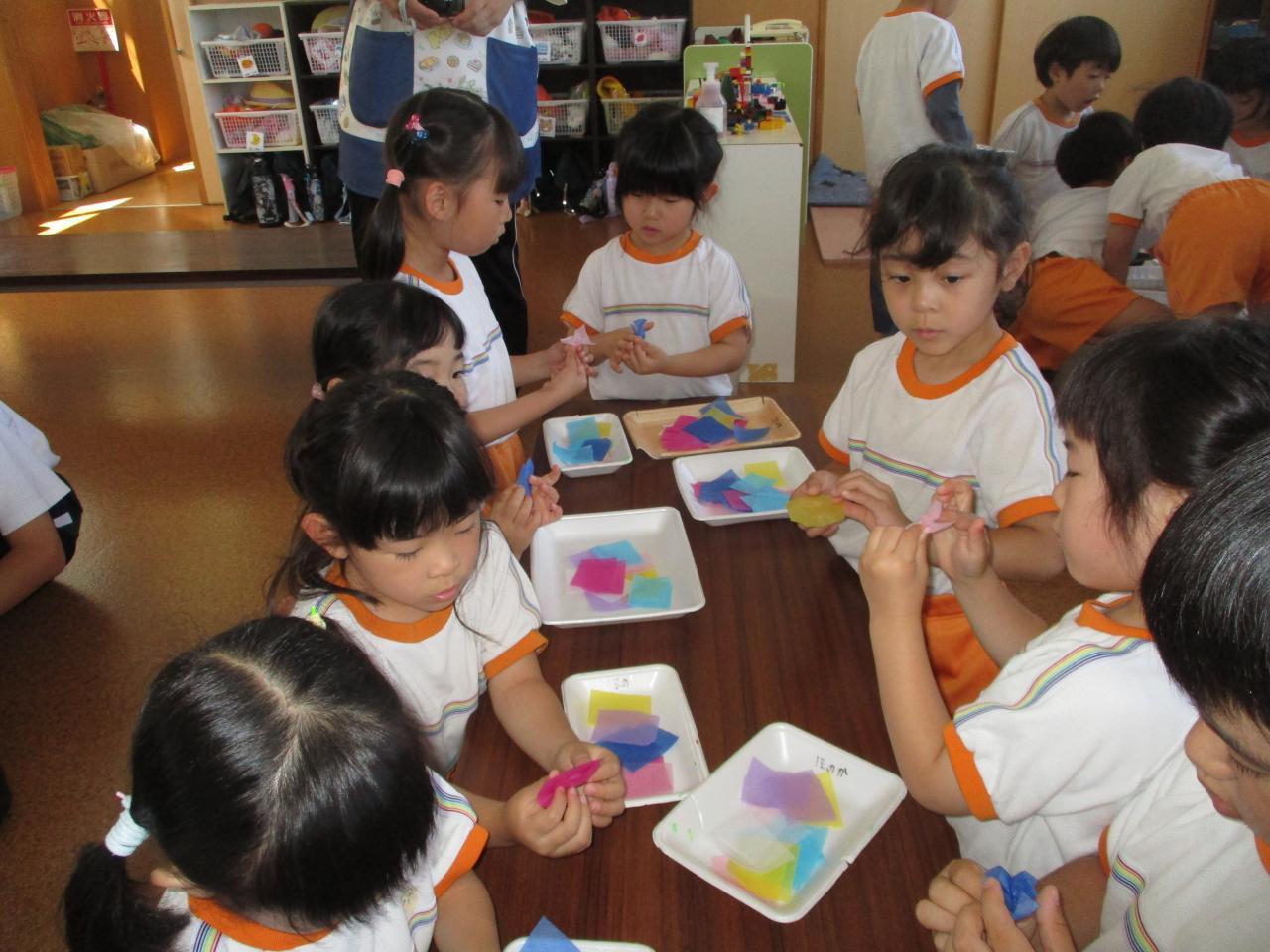 七夕飾りを作ったり、自分たちで考えた願い事を鉛筆で書いたりしました(*^_^*)