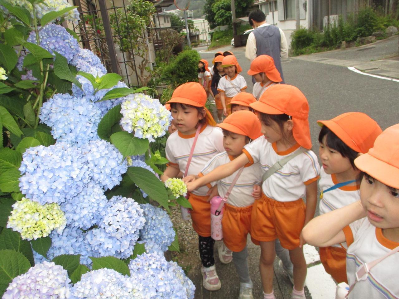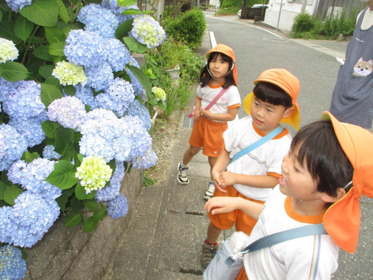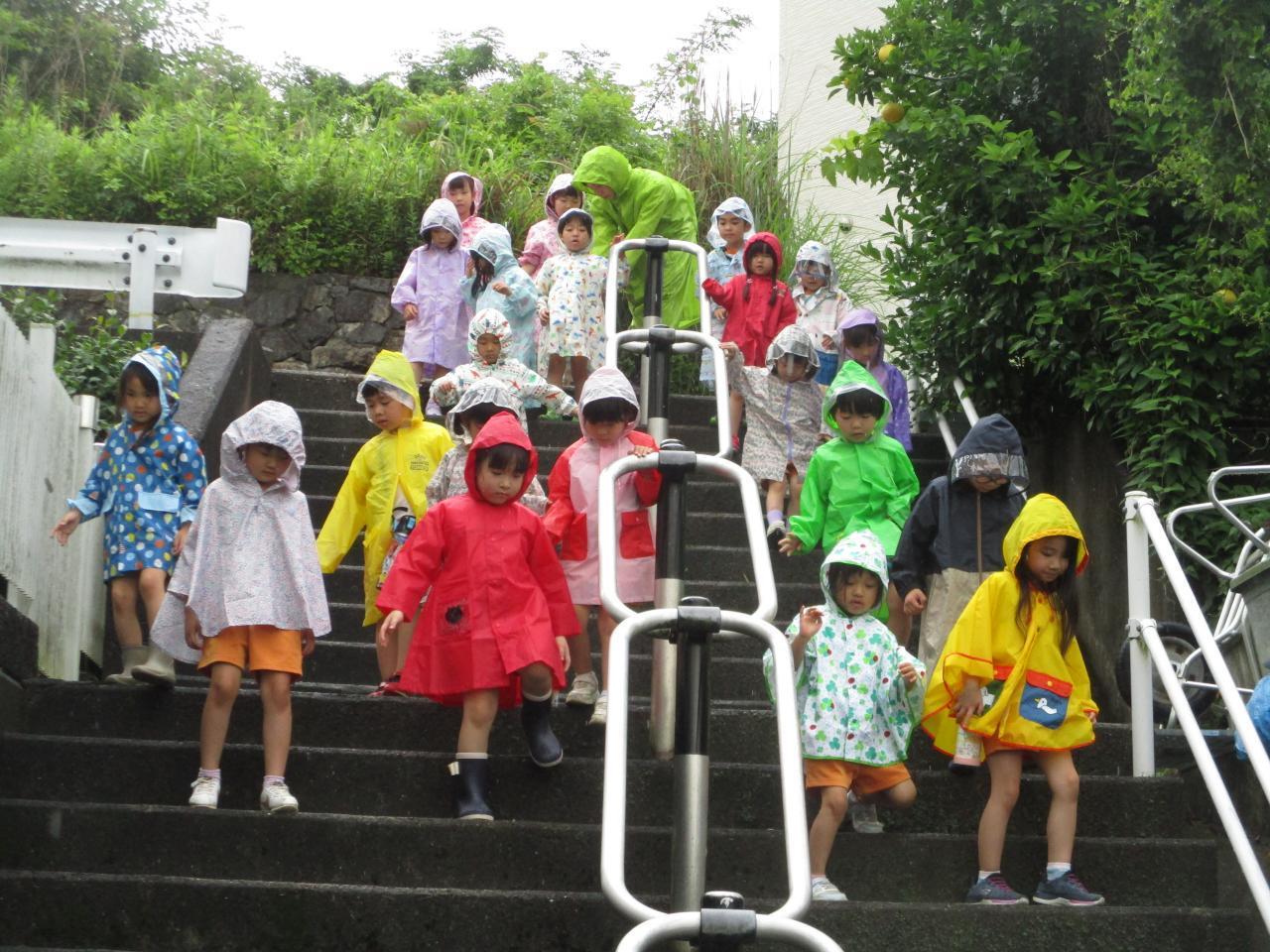 カタツムリやカエルは見つけられなくて、残念だったけど、みんなでカッパを着て散歩できて、楽しかったです☂