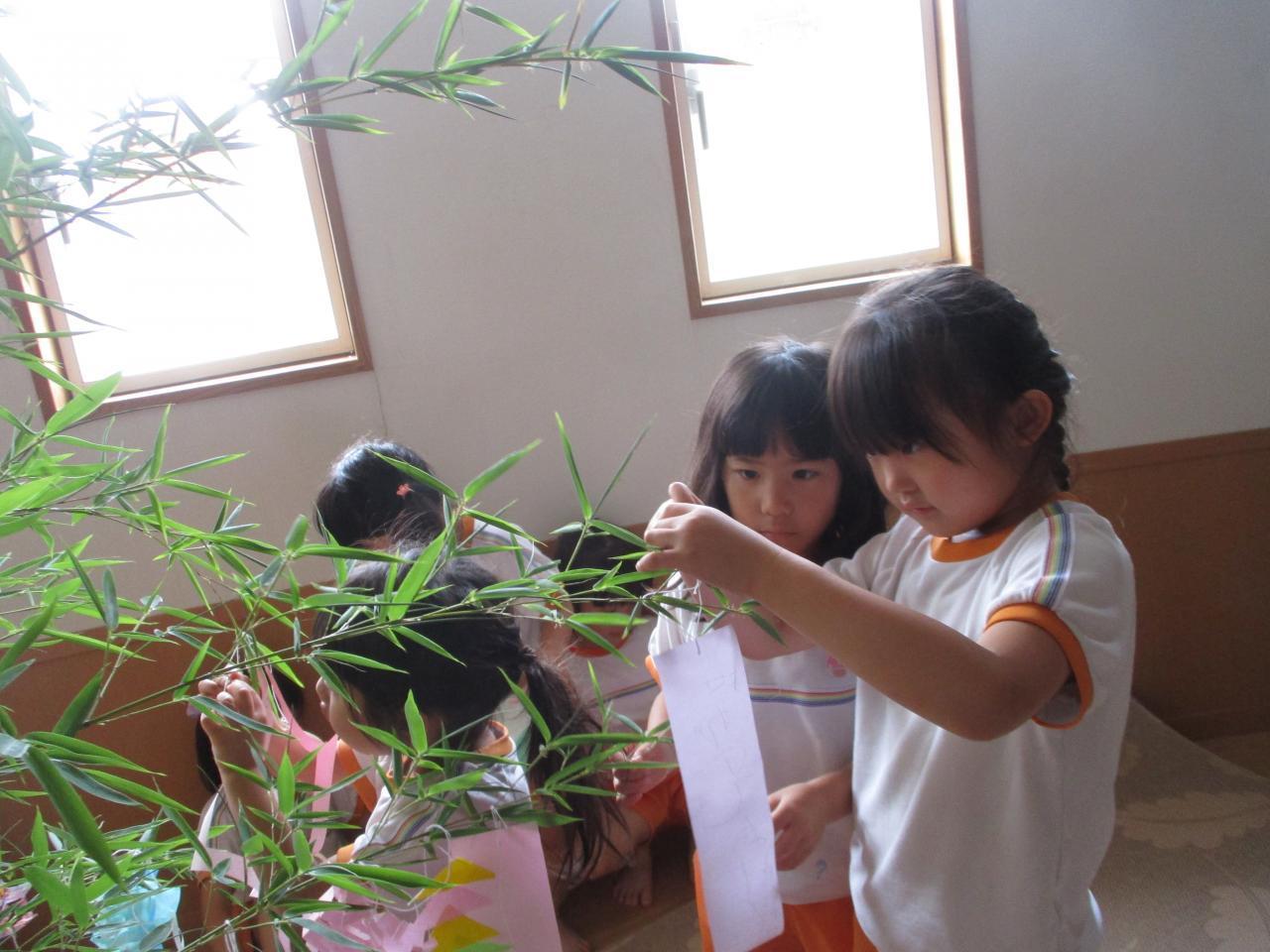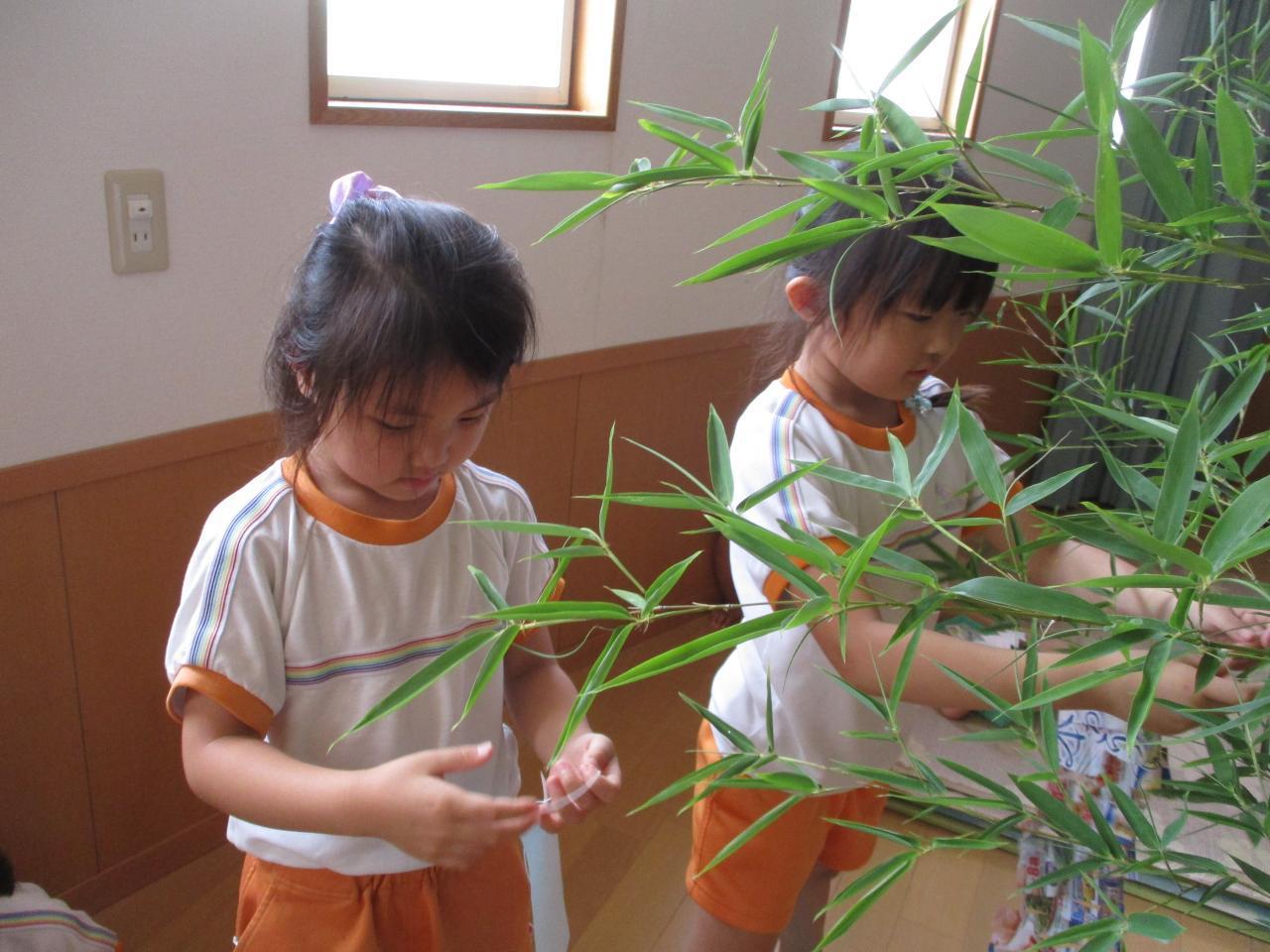 結ぶのは少し難しかったけど。自分で結ぼうとがんばったり、友達に教えてもらったりしながら、笹に飾ることができました🎋