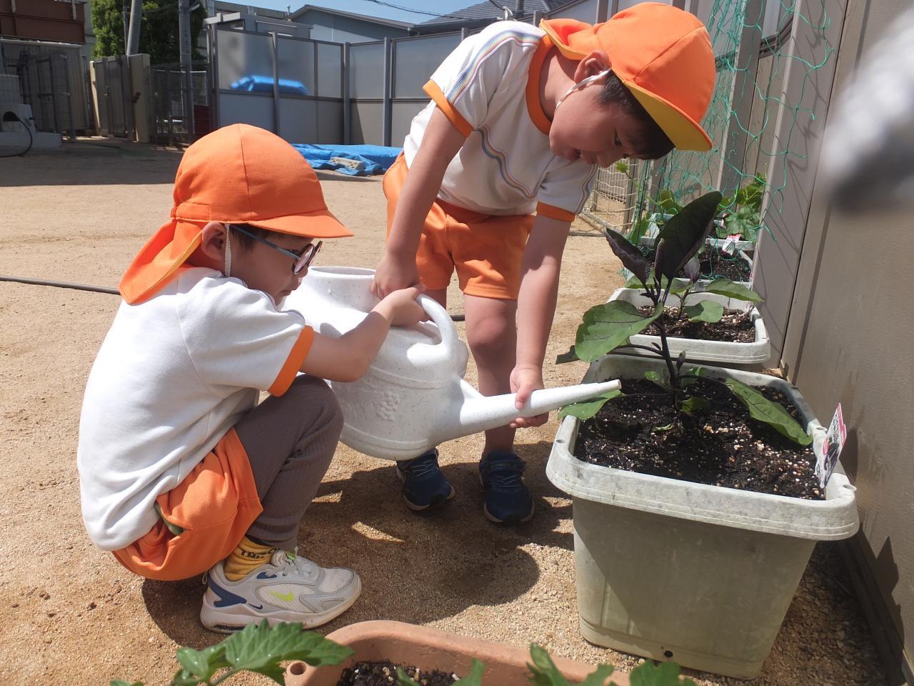 夏野菜の苗を植えてから、野菜のチームごとに日替わりで水やり当番をしています✨