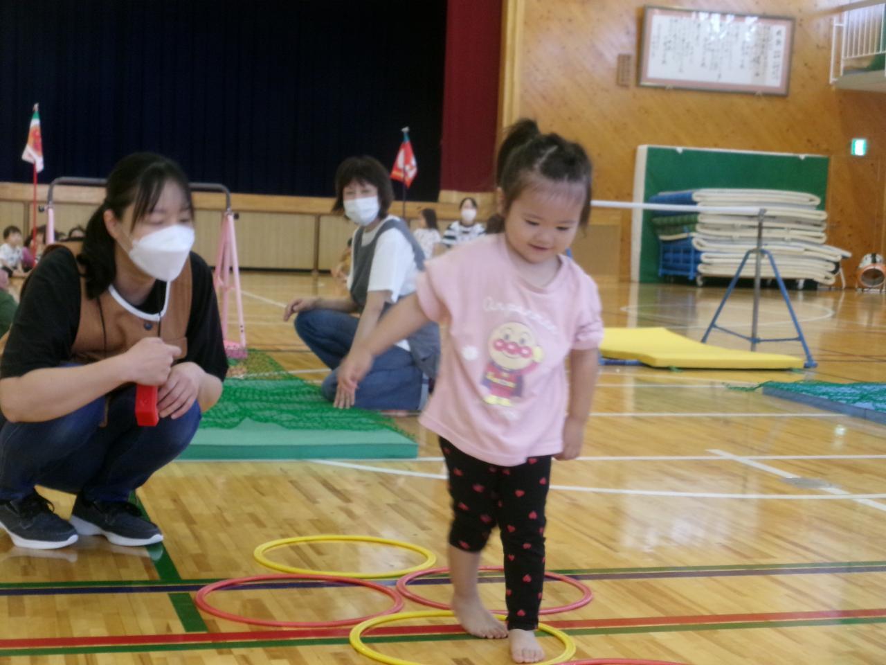サーキットでは、鉄棒やグーパージャンプなど、いろいろなことに挑戦し、園や体育館で練習を頑張りました😄